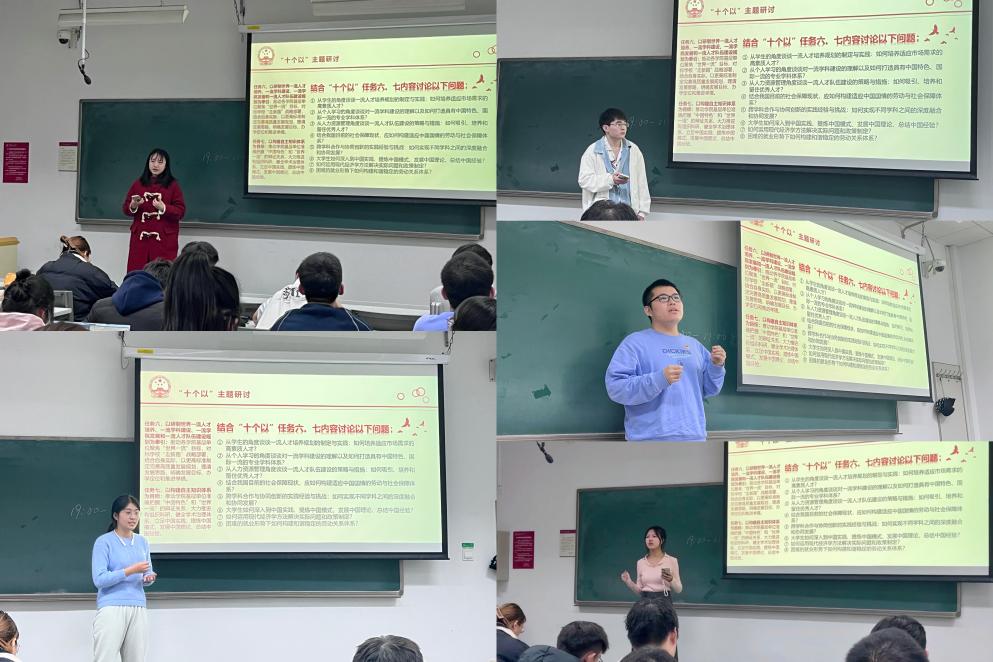 最后,为进一步深化大家对“十个以”任务要求的理解,谢敏同志组织大家将“十个以”任务内容与专业学习相结合,就一流学科建设、一流人才队伍建设、如何构建适应中国国情的劳动与社会保障体系、大学生如何深入到中国实践等话题展开讨论,现场研讨氛围热烈。