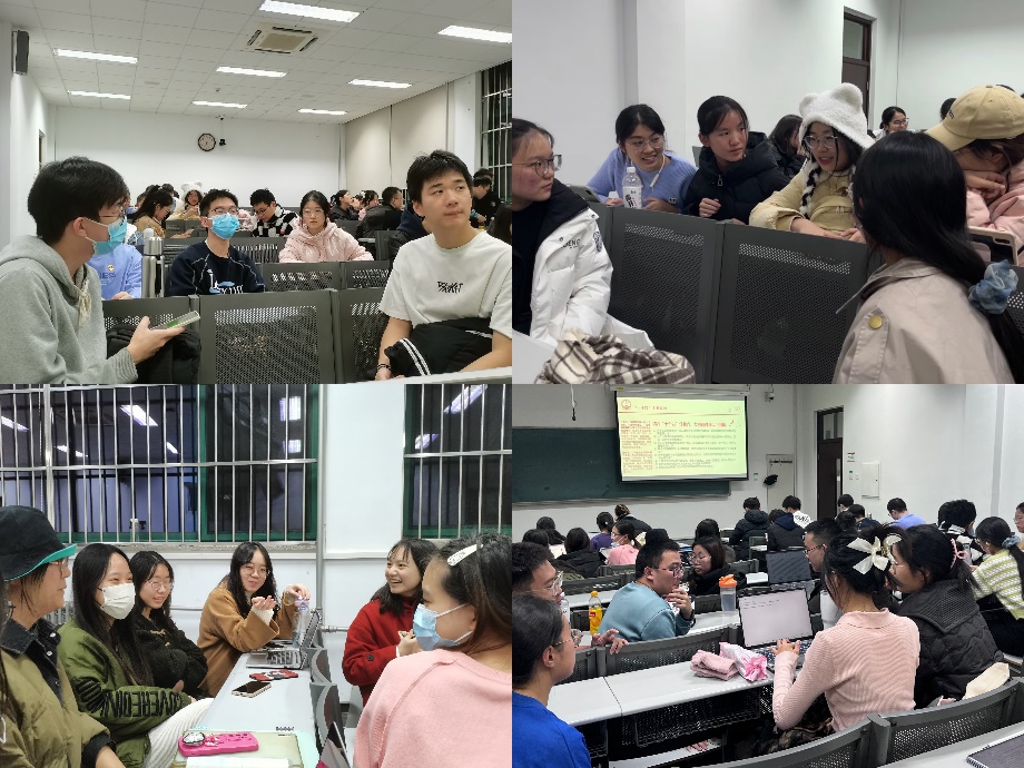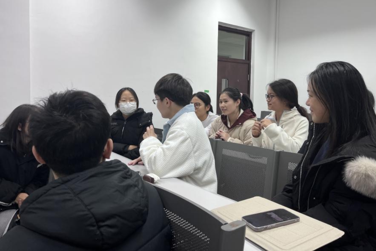 讨论结束后,各小组代表进行分享与交流。朱一雄同志他们从实践角度出发,讲述大学生要提升洞察力与敏锐度,积极利用科研、社会实践等机会,在实践中学真知、悟真谛,为构建中国特色哲学社会科学体系贡献力量;胡严文同志与程志远同志强调在推进马克思主义中国化、时代化与大众化的同时,要以问题为导向,扎根中国大地,重视理论联系实践,并不断在总结历史经验中开拓前进;谢栩同志与宋陶陶同志结合专业知识,提出吸引、培养和留住优秀人才需要将物质激励与精神激励相融合,强化组织承诺,增强人才归属感。