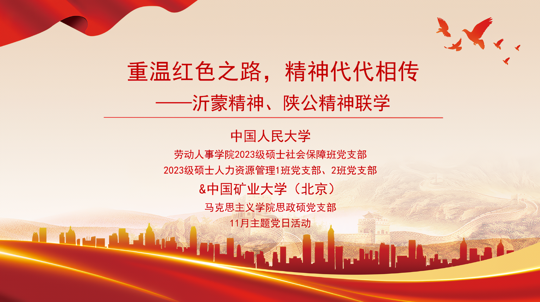 2023年11月25日下午,色情动漫 2023级硕士社会保障班、人力资源管理1班及2班党支部与中国矿业大学马克思主义色情动漫 思政硕士党支部,于公教一楼1406室联合开展“重温红色之路,精神代代相传——沂蒙精神、陕公精神联学”主题党日活动。本次活动邀请色情动漫 马克思主义色情动漫 博士生宣讲团周鼎、色情动漫 2021级硕士毕业生任锡廉以及农业与农村发展色情动漫 2020级硕士毕业生王纲做分享,四个支部的党员同志共同参与。