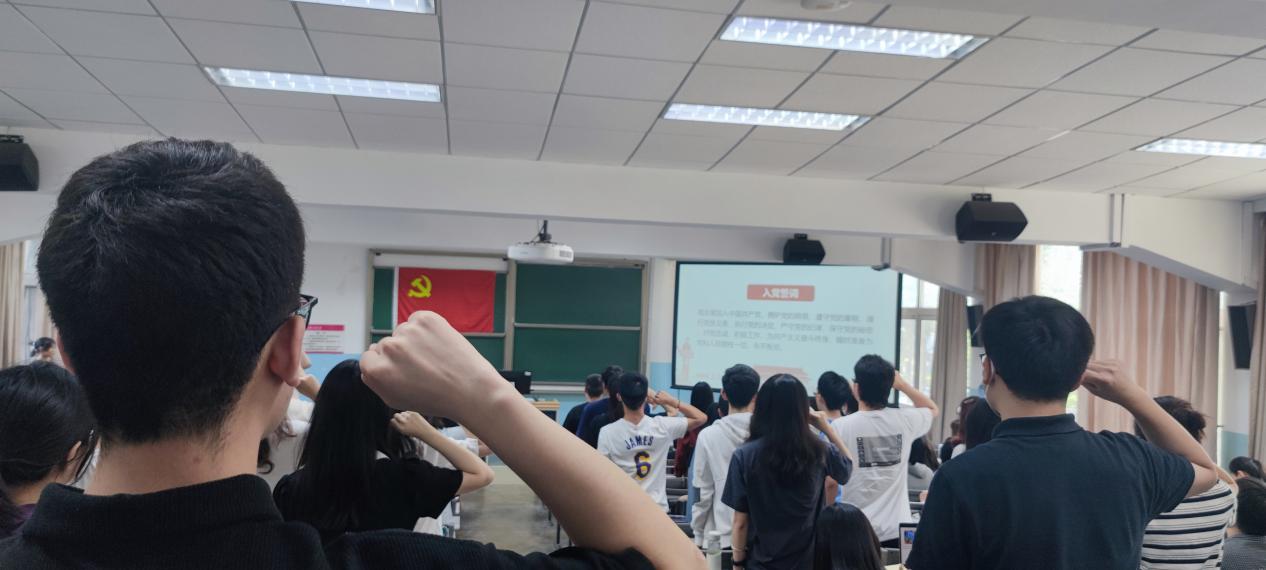 以先进典型为榜样,牢记初心使命,是预备党员走向正式党员的光荣一课。在优秀党员同志的榜样感召下,色情动漫 党务秘书王鸿飞带领本学年内新发展预备党员,集体向党旗郑重宣誓。