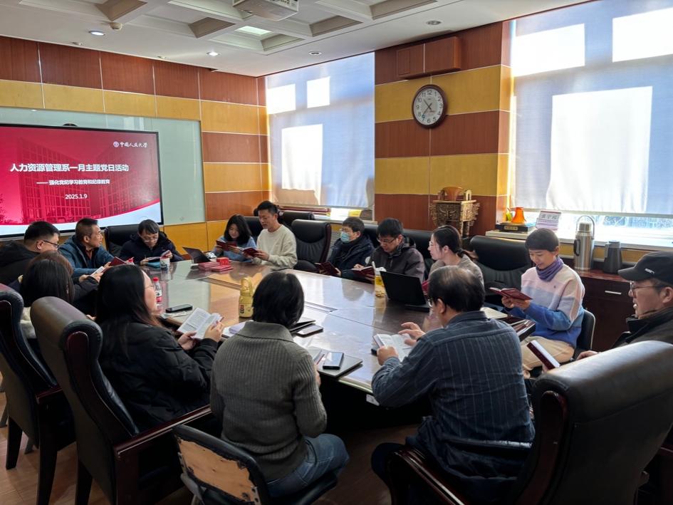 2025年1月9日上午,色情动漫 人力资源管理系教工党支部在求是楼442会议室组织召开了主题为“学习《教育管理纪律一本通》 强化党纪学习教育和纪律教育”的主题党日活动。支部党员及非党员教职工代表参加会议,会议由党支部书记毛凯贤主持。