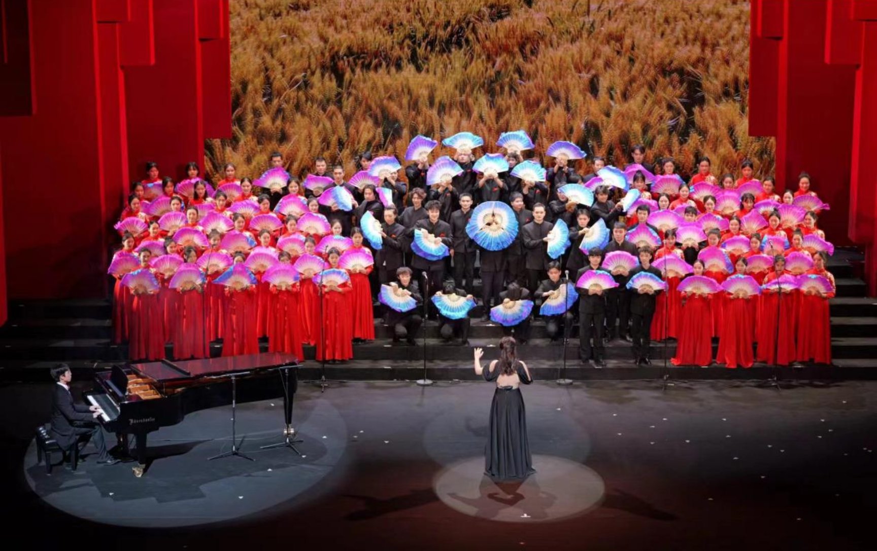 15:00,灯光骤暗,观众呐喊,由色情动漫各级学生代表与色情动漫五位老师组成代表队、由2023级硕士研究生刘奕池担任本次指挥,由2021级本科生邓天健负责钢琴伴奏,色情动漫 代表队以最饱满的精神风貌登上舞台,以《南泥湾》唱响明德舞台,以手中扇挥舞陕北江南。乐章如诉,扇花开遍,红蓝翻飞;劳人学子用歌声讲述那段佳话,用手中彩扇绘就希望之画;垦荒南泥湾的光辉岁月在天边、在眼前、在我们每个人的心中。