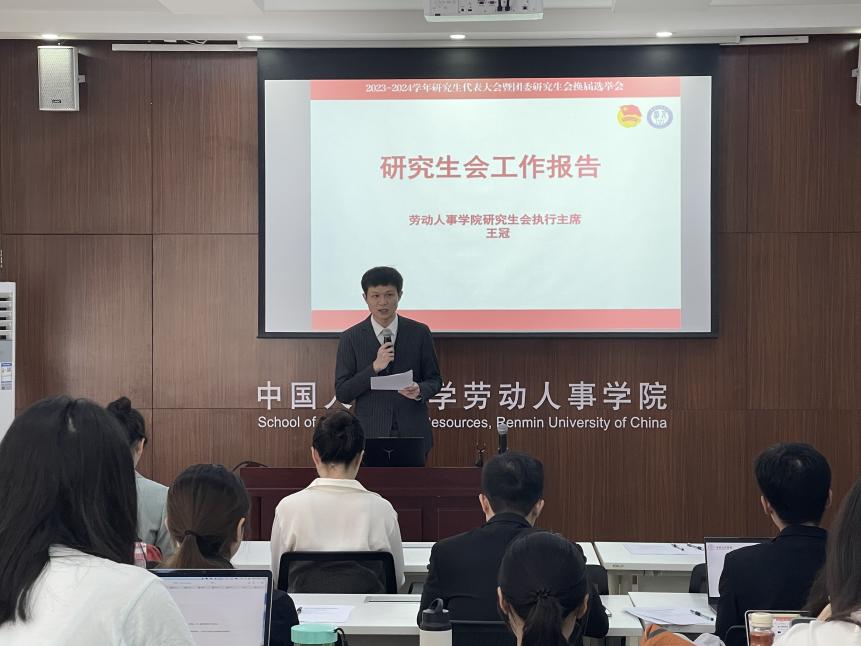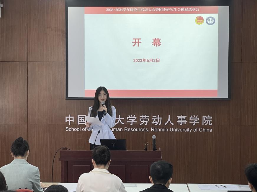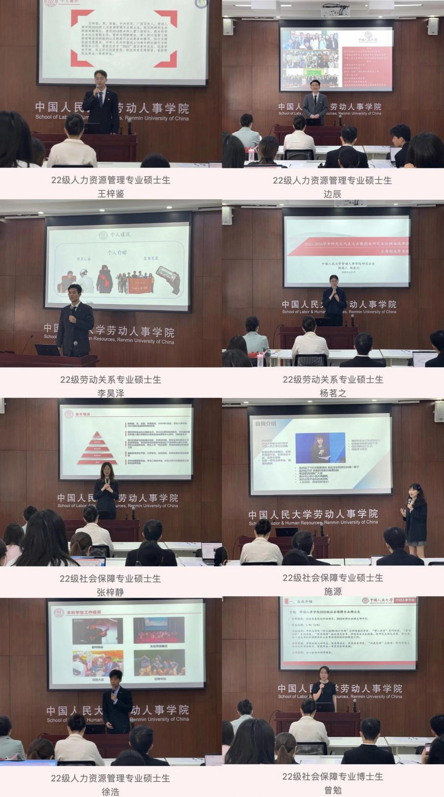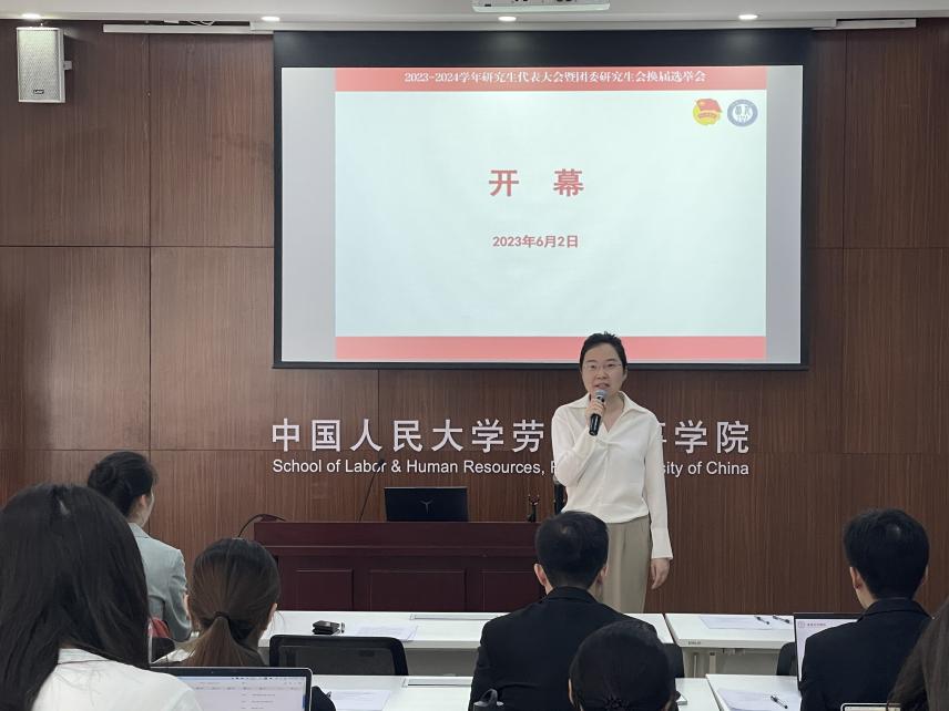 团委研究生会学生骨干候选人进行竞选演讲。22级人力资源管理专业硕士生王梓鉴,22级人力资源管理专业硕士生边辰,22级劳动关系专业硕士生李昊泽,22级劳动关系专业硕士生杨茗之,22级社会保障专业硕士生张梓静,22级社会保障专业硕士生施源,22级人力资源管理专业硕士生徐浩,22级社会保障专业博士生曾勉,共8位候选人依次进行个人述职报告,分别介绍了他们过去一个学年在研究生会的工作情况以及对未来工作的规划。