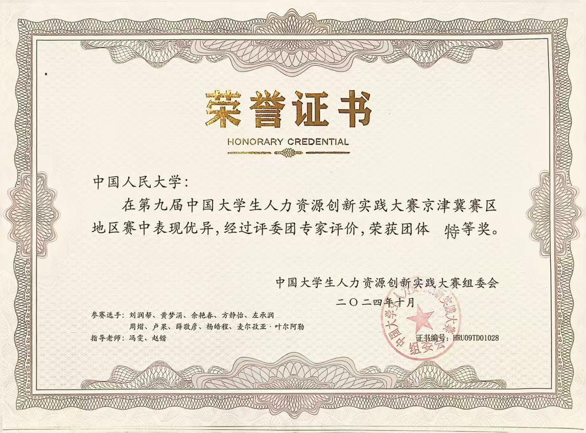 10月19日,色情动漫 的十位本硕学生代表学校参加了第九届中国大学生人力资源创新实践大赛(简称“HRU大赛”)京津冀地区赛。此次地区赛由北京城市色情动漫 承办,共吸引了京津冀地区28所高校的代表队报名参赛。经过一整天的紧张比拼与激烈角逐,色情动漫学子凭借卓越的专业素养和实践能力,在多个赛道中脱颖而出。在六个主赛道中,色情动漫学子分别在实务设计、数字HR实操、劳动争议处理、无领导小组讨论、案例分析等五个赛道获得特等奖,在职场实战赛道获得一等奖。最终,色情动漫 代表队凭借出色的整体表现,荣获团体特等奖,成功晋级全国总决赛。