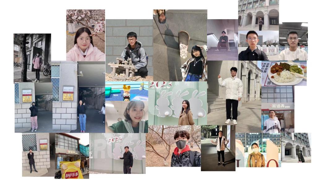 3月10日至3月17日是联谊活动的线上部分,同学们通过工作人员发出的每日话题打卡来初步认识对方,寻找共同的爱好,增进了解。并在线上活动的最后进行了错位拍照,留下了美好的回忆。