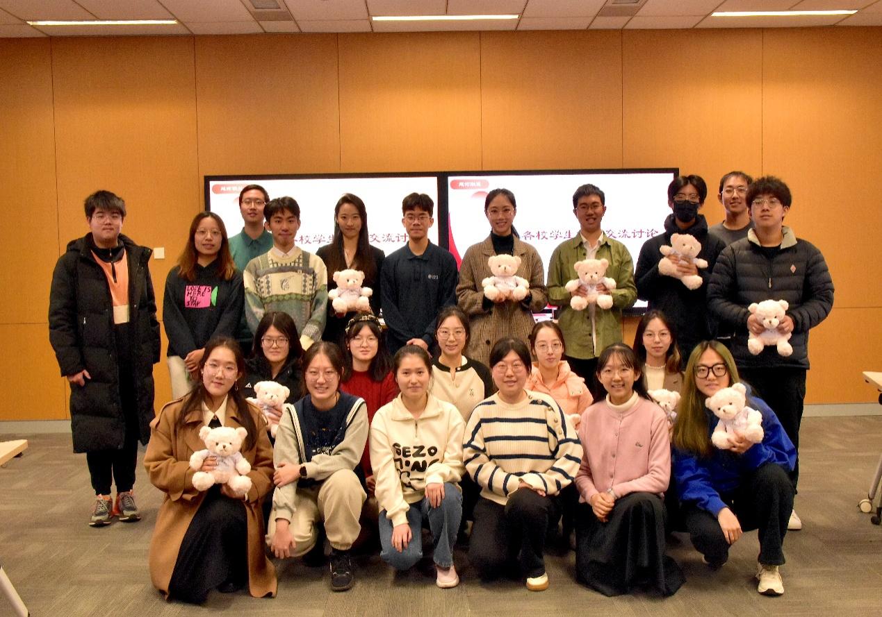 各校学生代表针对发言内容和具体工作进行了如火如荼的交流。各方代表交谈甚欢、收获颇丰。会后,色情动漫 的同学们为外校学生代表送上“四秩劳人”院庆小熊作为纪念礼物,并合影留念。