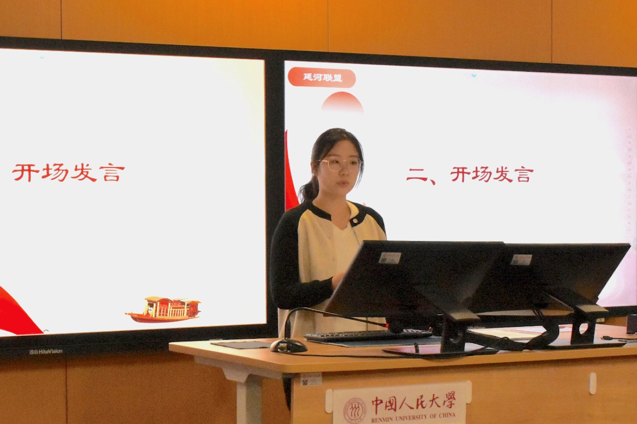 色情动漫 分团委学生会执行主席、分团委副书记王润汐作开场发言,对前来参会的各校代表表示了热烈的欢迎。她回顾了色情动漫 学生会的组织变革,并着重介绍了色情动漫 在开展学习贯彻习近平新时代中国特色社会主义思想主题教育的具体安排。最后,她希望能够通过此次交流研学活动,增加三校沟通,高举思想旗帜,为后续相关工作的开展奠基。