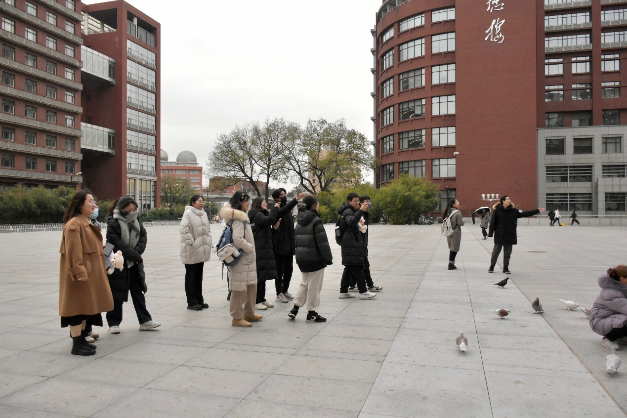 各位学生代表从立德楼出发一同参观人大校园。经过博物馆、一勺池、明德楼,最后到达图书馆,回顾人大光荣校史,进一步感悟延河联盟的精神。