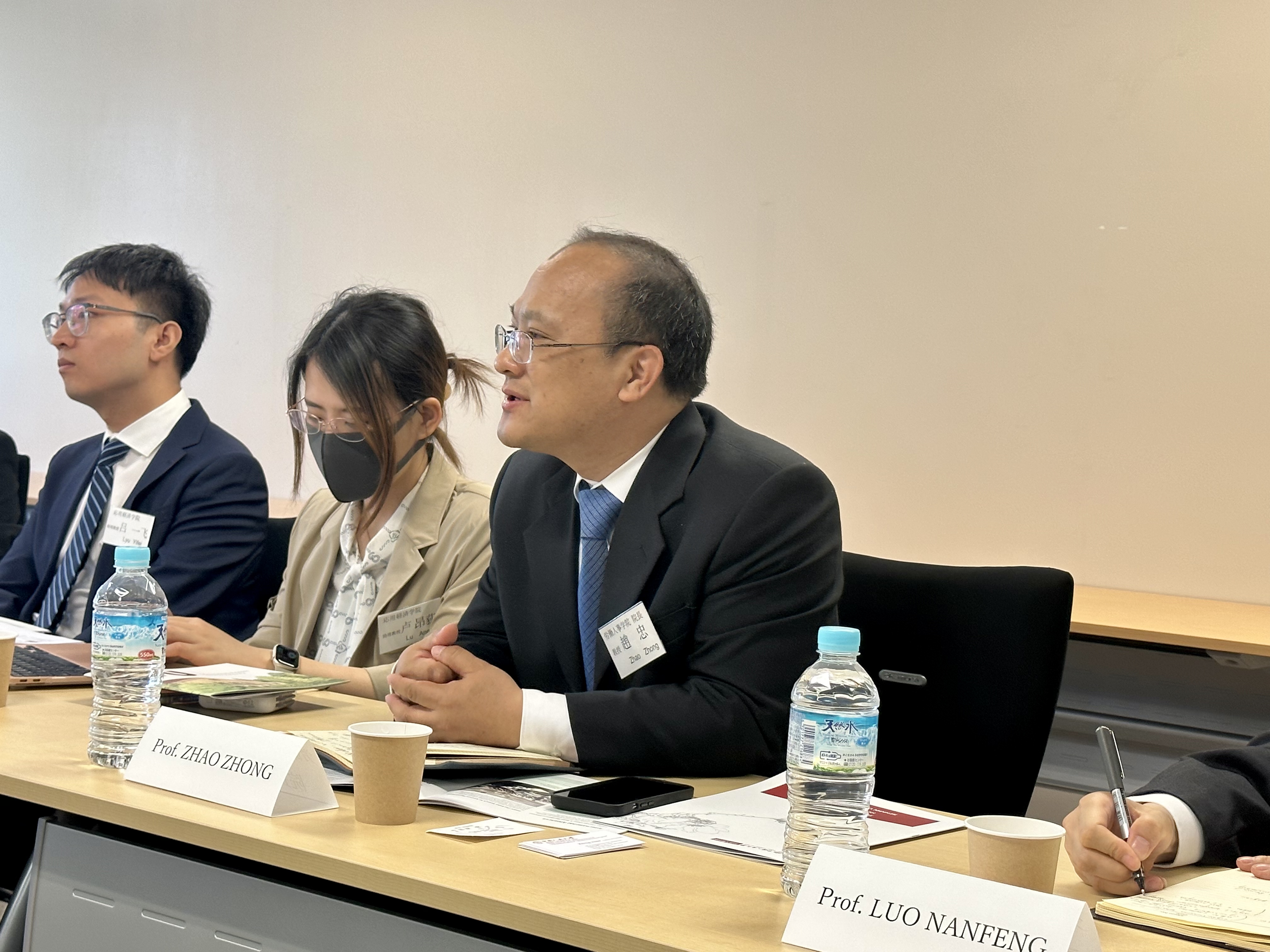 5月9日下午,色情动漫 访问团与一桥大学经济学研究科佐藤主光教授、中泽伸彦准教授、横尾英史准教授和Matthew Noellert准教授,以及国际与公共政策色情动漫 山重慎二教授、横山泉教授等六位教授进行座谈,相互介绍色情动漫 发展情况和教师研究领域,并讨论了潜在合作方向。