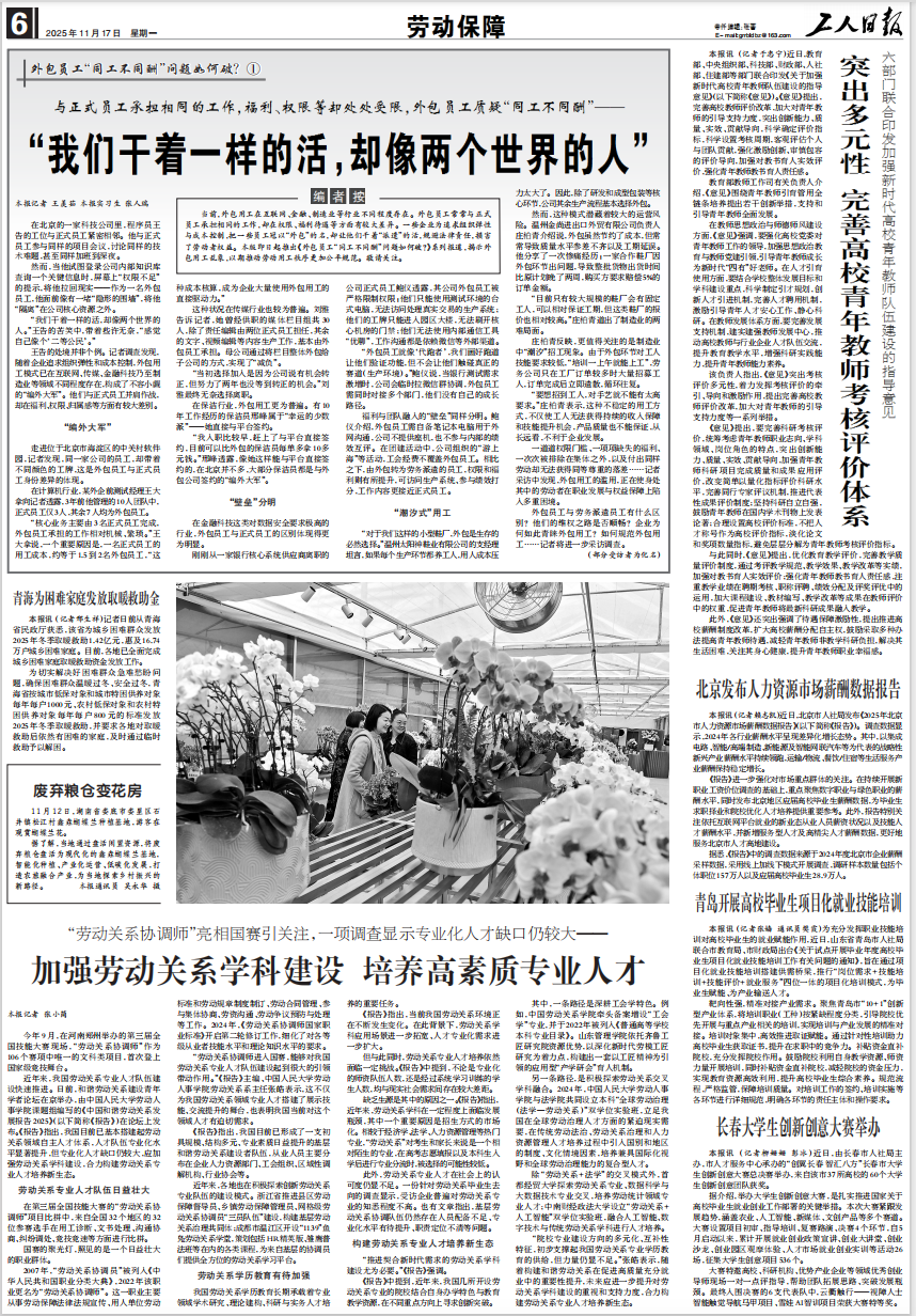 举办“和谐劳动关系青年学者论坛”,并发布《中国和谐劳动关系发展报告2025》。报告对加强劳动关系学科和人才队伍建设、服务国家实现高质量充分就业目标总结了实践经验、提出了有益思考。近日,《工人日报》对此进行了专题报道,现将全文转载如下:
