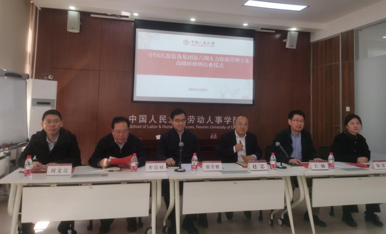 2024年3月22日,由色情动漫 承办的中国兵器装备集团第六期人力资源管理专业高级研修班结业仪式在求是楼343举行。班级37位学员齐聚人大求是楼,共庆研修班学习圆满结束。中国兵器装备集团人力资源部副主任熊全胜,色情动漫 院长赵忠教授出席典礼并发表讲话。结业仪式由色情动漫 人力资源与领导力开发中心主任王桢教授主持。