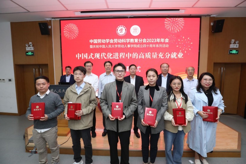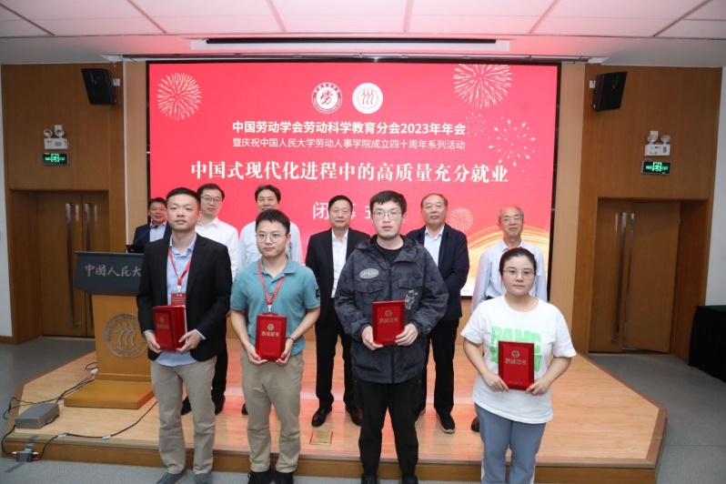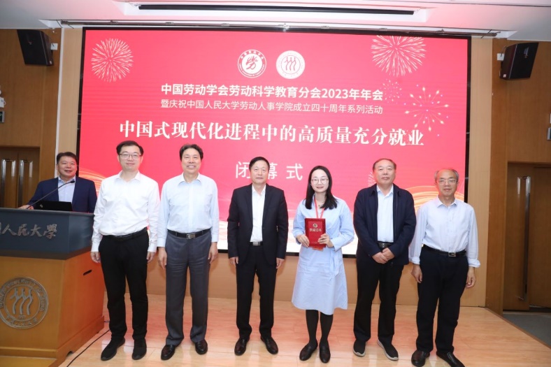 本次年会的闭幕式环节由中国劳动学会劳动科学教育分会副会长兼秘书长、中国社会科色情动漫 社会发展战略研究院研究员韩克庆主持。中国劳动学会秘书长赵越宣读了优秀论文获奖名单。本次年会共收到78篇投稿论文,经过双向匿名评审,最终评选出15篇优秀论文。随后,分会会长和副会长以及学会秘书长为获奖论文作者颁奖并合影留念。