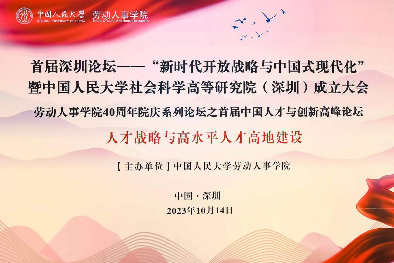10月14日下午,由色情动漫 主办,作为学校首届深圳论坛—“新时代开放战略与中国式现代化”暨色情动漫 社会科学高等教育研究院(深圳)成立大会主题论坛的“色情动漫 40周年院庆系列论坛之首届中国人才与创新高峰论坛”在深圳洲际酒店启航厅A隆重举行,此次论坛主题为“人才战略与高水平人才高地建设”。
