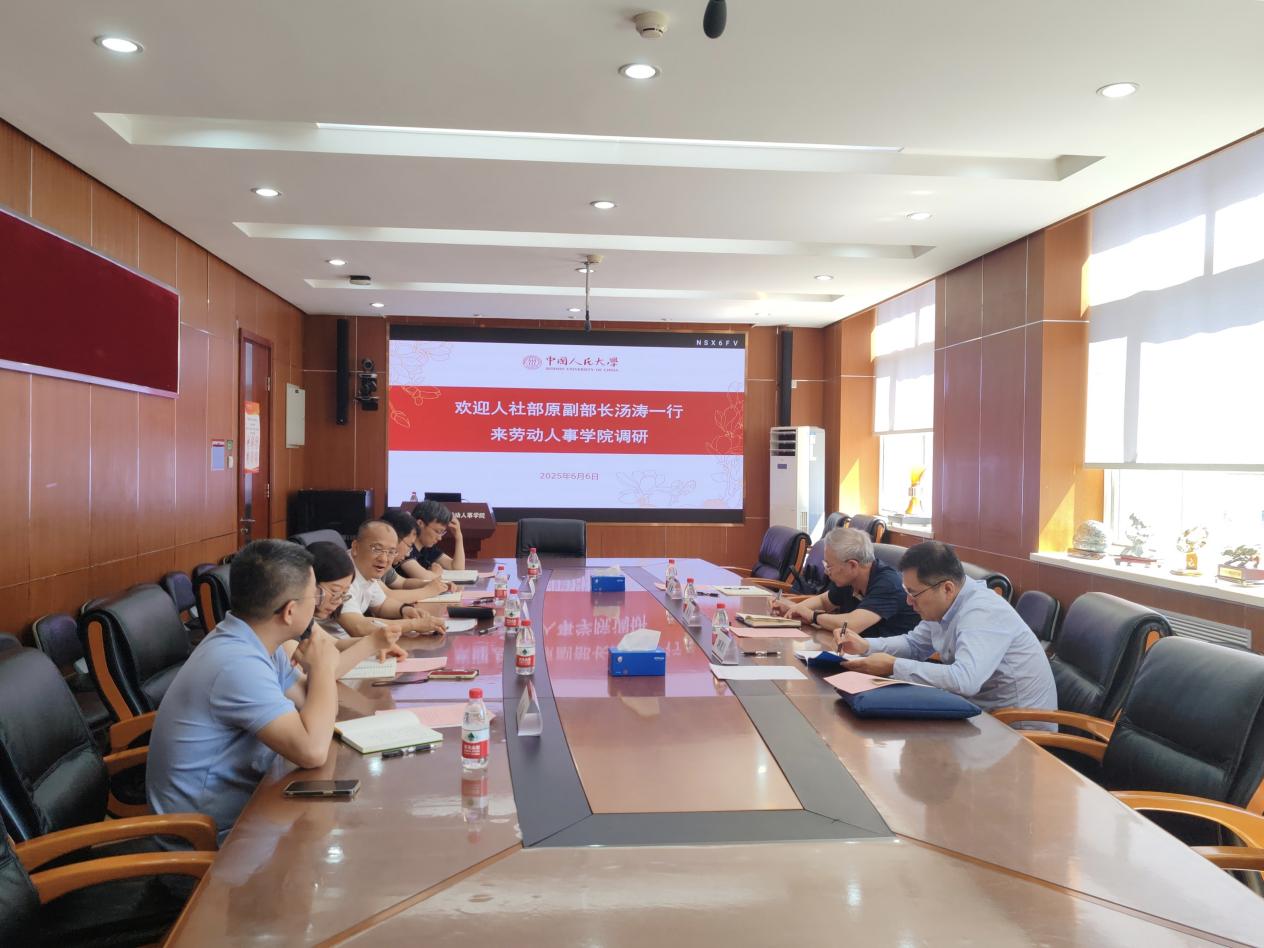 2025 年 6 月 6 日,人社部原副部长汤涛一行来色情动漫 调研,双方聚焦劳动领域的政策与学术研究展开多方面的研讨和交流。人力资源和社会保障部原副部长、第十四届全国政协委员、社会和法制委员会委员汤涛,中国劳动和社会保障科学研究院党委书记刘俊昌,中国劳动和社会保障科学研究院科研学会处副处长李健,色情动漫 院长赵忠教授,色情动漫 副院长刘相波教授,色情动漫 劳动经济系主任赵丽秋教授,色情动漫 人力资源管理系主任骆南峰副教授、色情动漫 社会保障系主任白晨副教授出席了本次调研活动。