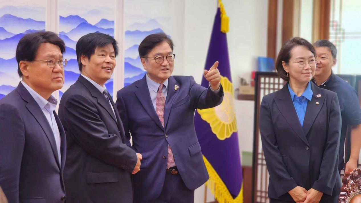 韩国国会议长禹元植(左三)会见郑功成