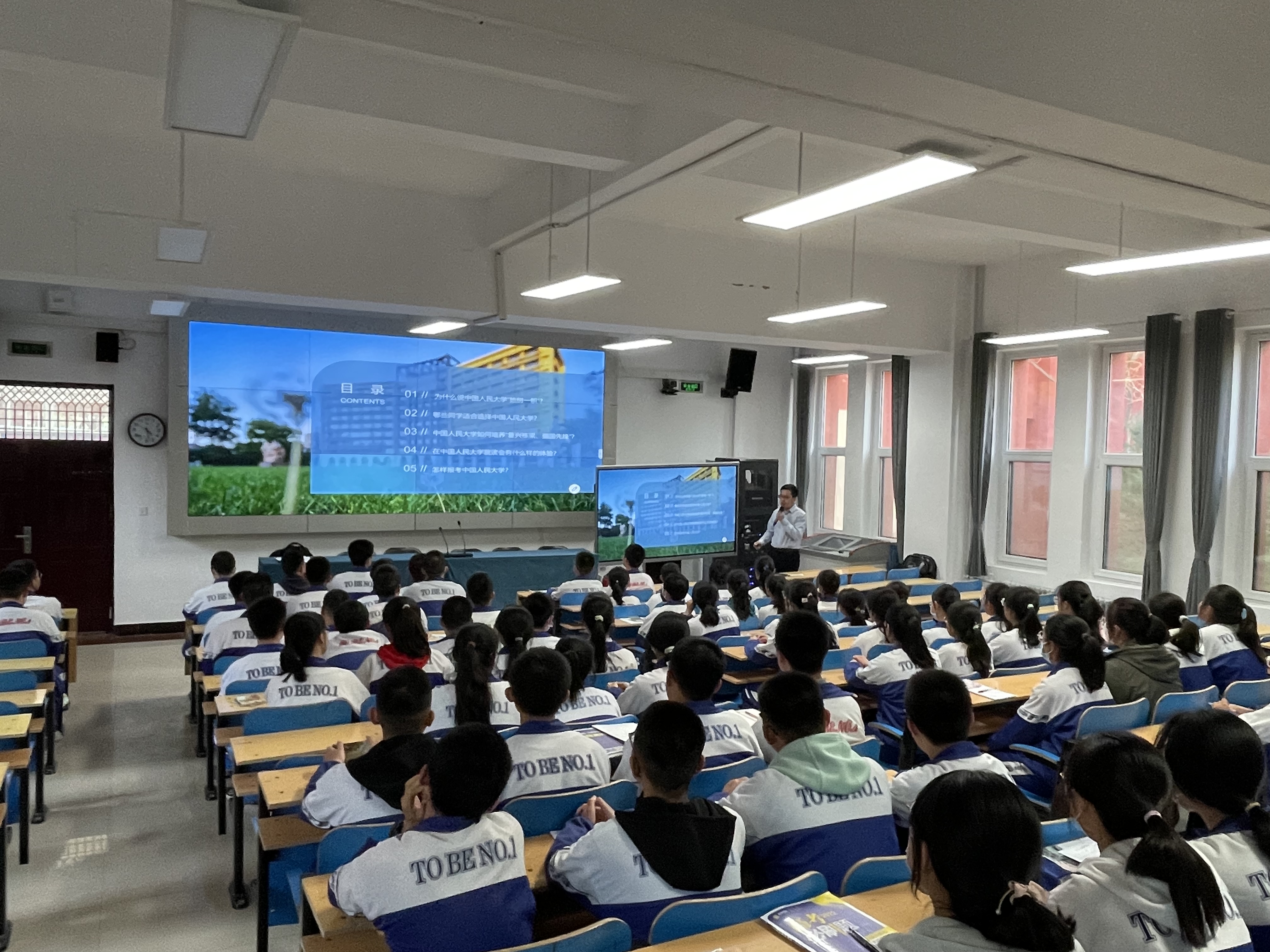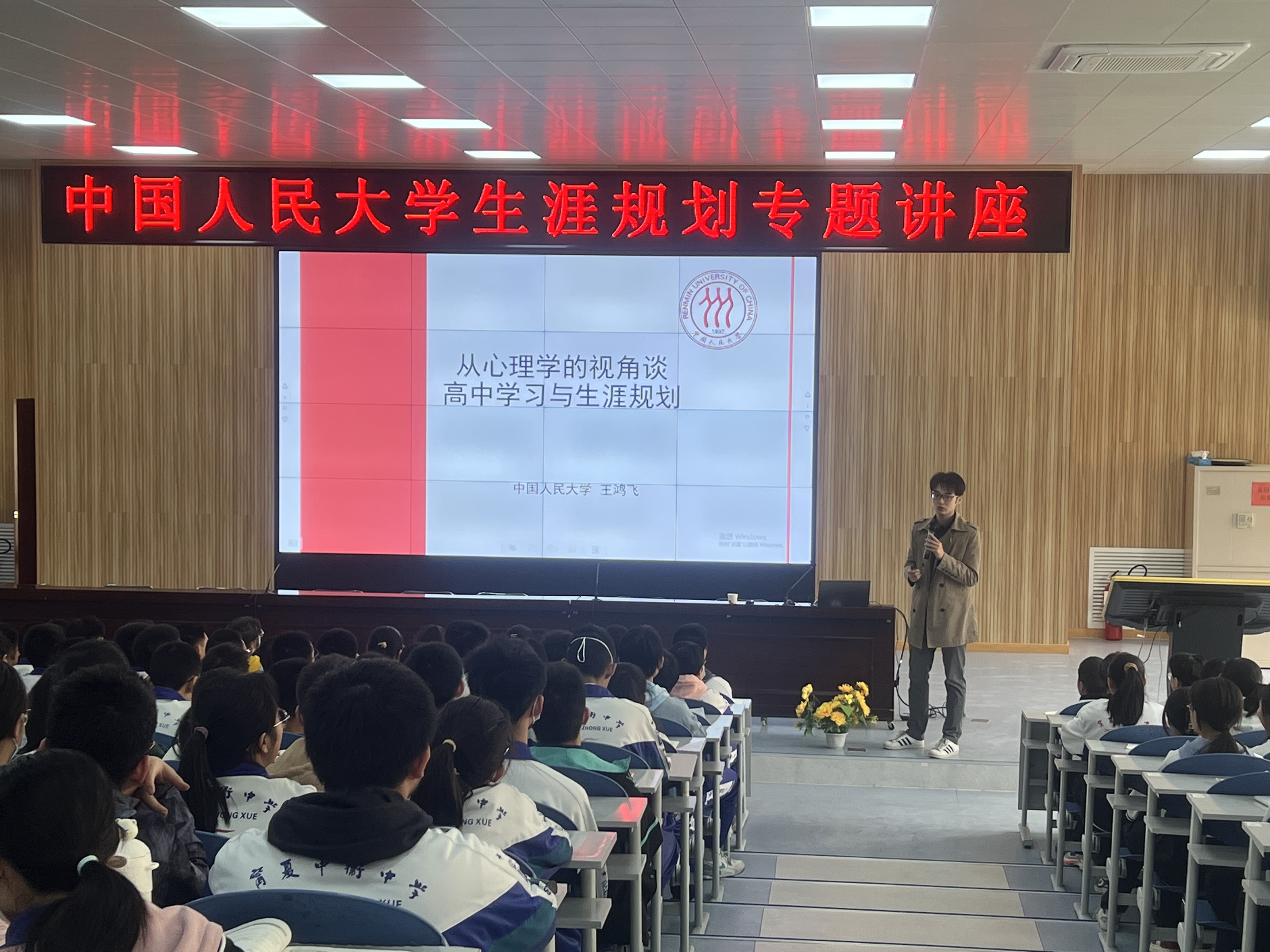 王鸿飞以“从心理学视角谈高中学习与生涯规划”为题,从“动机、情绪、归因”三个关键词谈高中学习,从“科技、人、创新”三个关键词谈生涯规划,并将党的二十大精神和人大精神贯穿其中,帮助同学们寻找学习“心流”,树立理想信念。