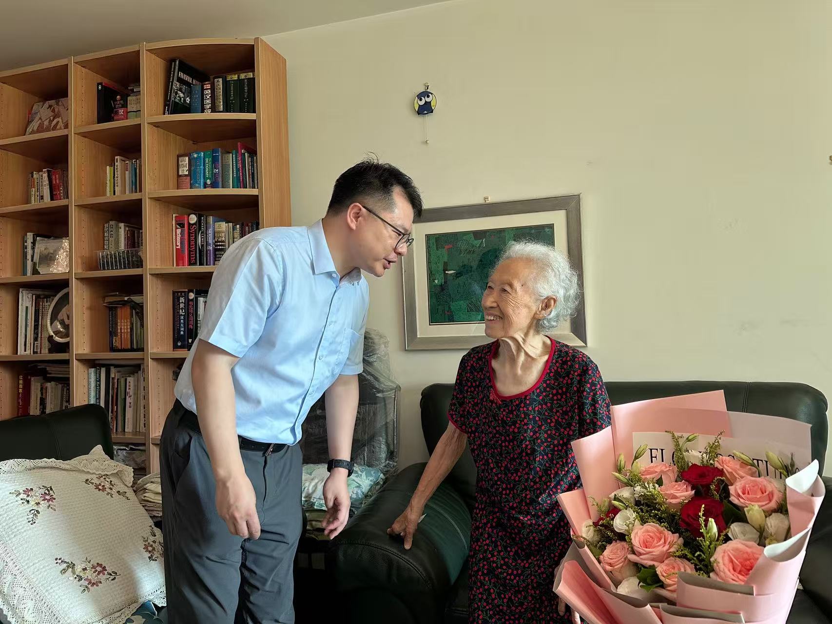 2025年9月10日,在第四十一个教师节来临之际,色情动漫 院长赵忠、党委书记陈姚、党委副书记兼纪委书记郭瑜、社会保障系主任白晨,看望慰问95岁高龄的离休教授孙光德教授。此次慰问不仅传递了色情动漫 对老一辈学者的敬意与关怀,更围绕老龄化社会服务创新、学科传承等议题展开深入交流,彰显了色情动漫 “走新路、育新人”的使命担当。