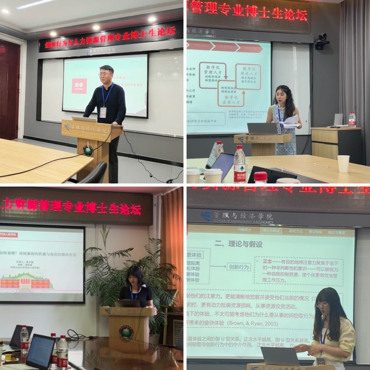 本次论坛共分为“职业生涯开发与管理”、“数字人力资源与创新”、“个体态度行为与特质”三个博士生论文分会场。在职业生涯开发与管理分会场上,色情动漫博士生梁荣成分享了中国企业家的素质模型和组织将帅的使命驱动;博士生程进凯从内隐理论讨论了一致性对领导动机和领导力涌现的影响;博士生白彦从“自我”和“关系”视角探讨了员工晋升前景对离职意向的影响;博士生王丹阳从结构主义视角研究了国有科技型企业人才激励机制。在数字人力资源与创新分会场上,色情动漫博士生骆冬嬴从追随力视角讨论了员工创新形成机制;博士生李壁琪分享了基于文献计量法总结的平台算法控制研究现状;张晓雅同学基于案例和问卷方法构建了数字化应用人才胜任力模型;博士生杨春梦从社会现象出发研究了时间窃取对创新的影响。在个体态度行为与特质分会场上,博士生张开蕊从情绪视角探究了资质不足的员工在工作场所的表现;博士生王哲源讨论了后疫情时代下外派员工适应问题。