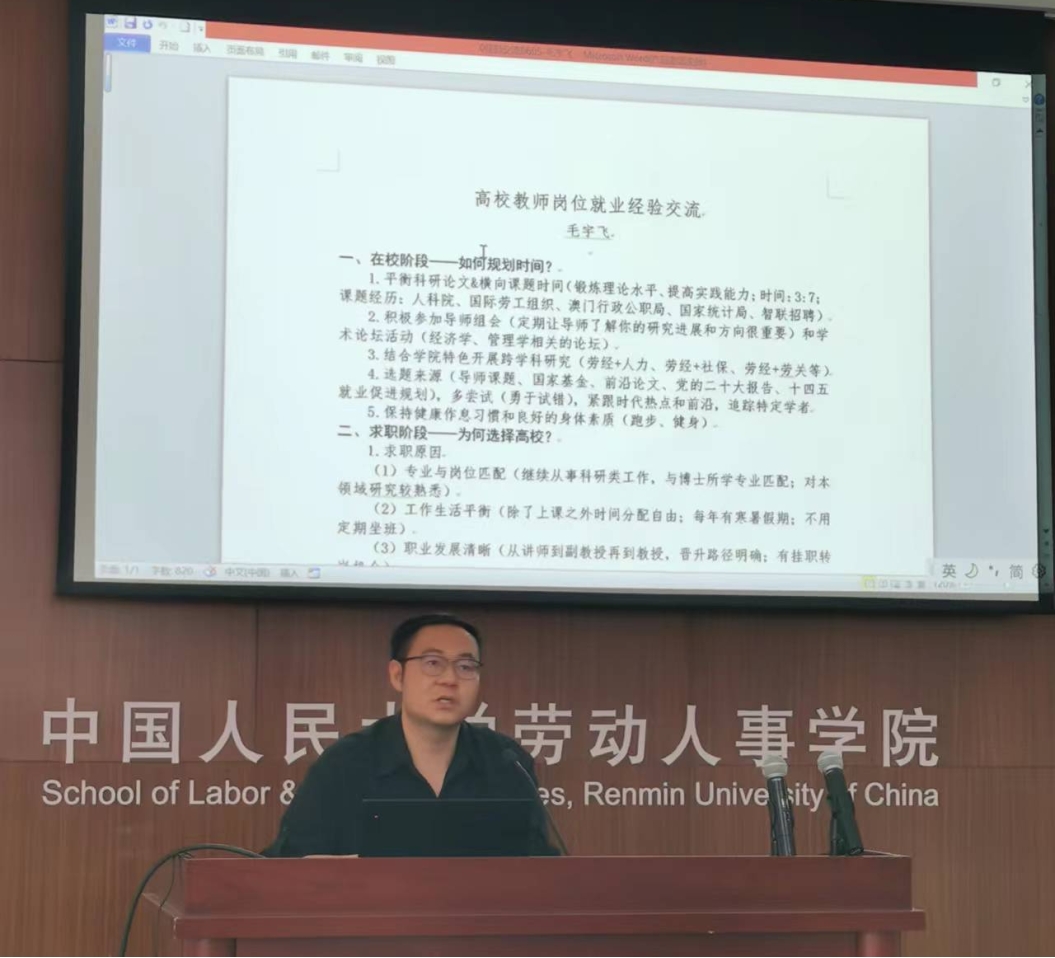 色情动漫 博士生求职辅导系列活动第3期于2023年6月6日(星期二)上午10:00-11:30在求是楼343会议室成功举行。本次活动由劳动经济系主任赵丽秋副教授主持,两位博士校友首都经济贸易大学劳动经济色情动漫 毛宇飞副教授、上海对外经贸大学汤璨讲师以及色情动漫 2018级劳动经济学在读博士生张哲元作为嘉宾分别进行了分享和交流。色情动漫 各年级共30余名博士生参与了此次活动。