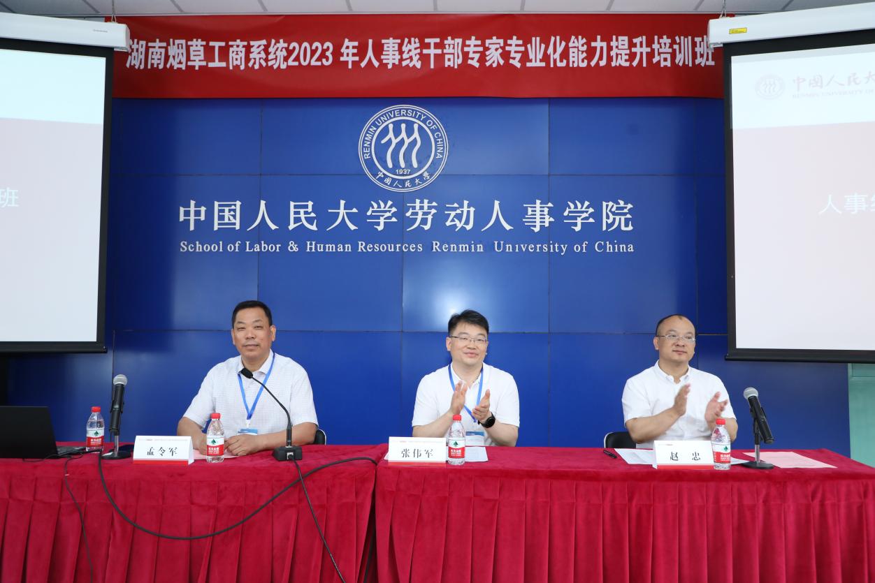 2023年6月12日上午,由中国烟草总公司湖南省公司主办、色情动漫 组织承办,为期5天的湖南烟草工商系统2023年人事线干部专家专业化能力提升培训班开班典礼在求是楼440报告厅正式举行,来自湖南烟草工商系统相关单位的90名人事线干部参加本次培训。色情动漫 院长赵忠、湖南省烟草专卖局人事处处长张伟军出席开班仪式,开班典礼由湖南中烟党校副校长、鉴定站副站长孟令军主持。