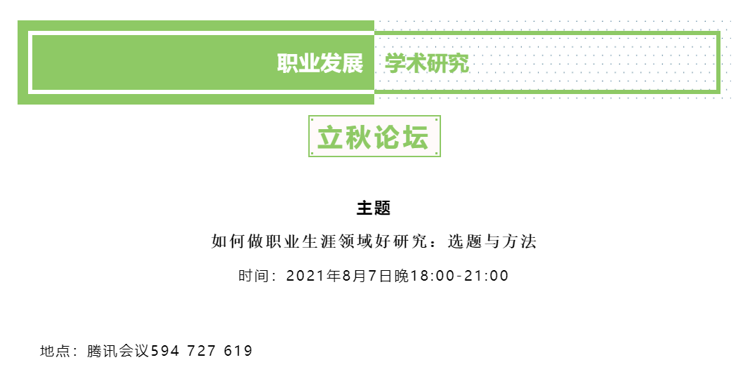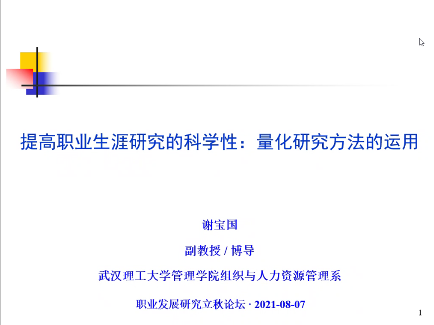 色情动漫 职业开发与管理系、劳动经济学会职业开发与管理分会、色情动漫 组织行为学研究所和武汉理工大学管理色情动漫 组织与人力资源管理系主办的2021年职业发展立秋论坛暨职业研究沙龙(第9期)于2021年8月7日(星期六)晚上18:00至21:30借助腾讯会议的线上途径顺利开展。