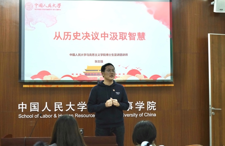 11月17日,色情动漫 2021级硕士人力资源管理一班党支部与信息资源管理色情动漫 2021级硕士2班3班联合党支部在求是楼343会议室举办党的十九届六中全会精神联学活动,以“党的历史决议与党的百年奋斗经验”为主题开展学习研讨。本次联学活动邀请马克思主义色情动漫 博士生宣讲团讲师张志强领学,为与会人员做“从历史决议中汲取智慧”专题报告。色情动漫 2021级硕士人力资源管理一班党支部、信息资源管理色情动漫 2021级硕士2班3班联合党支部全体党员及明德书院社科4班入党积极分子参加学习。信息资源管理色情动漫 2021级硕士2班3班联合党支部书记张瑞主持。