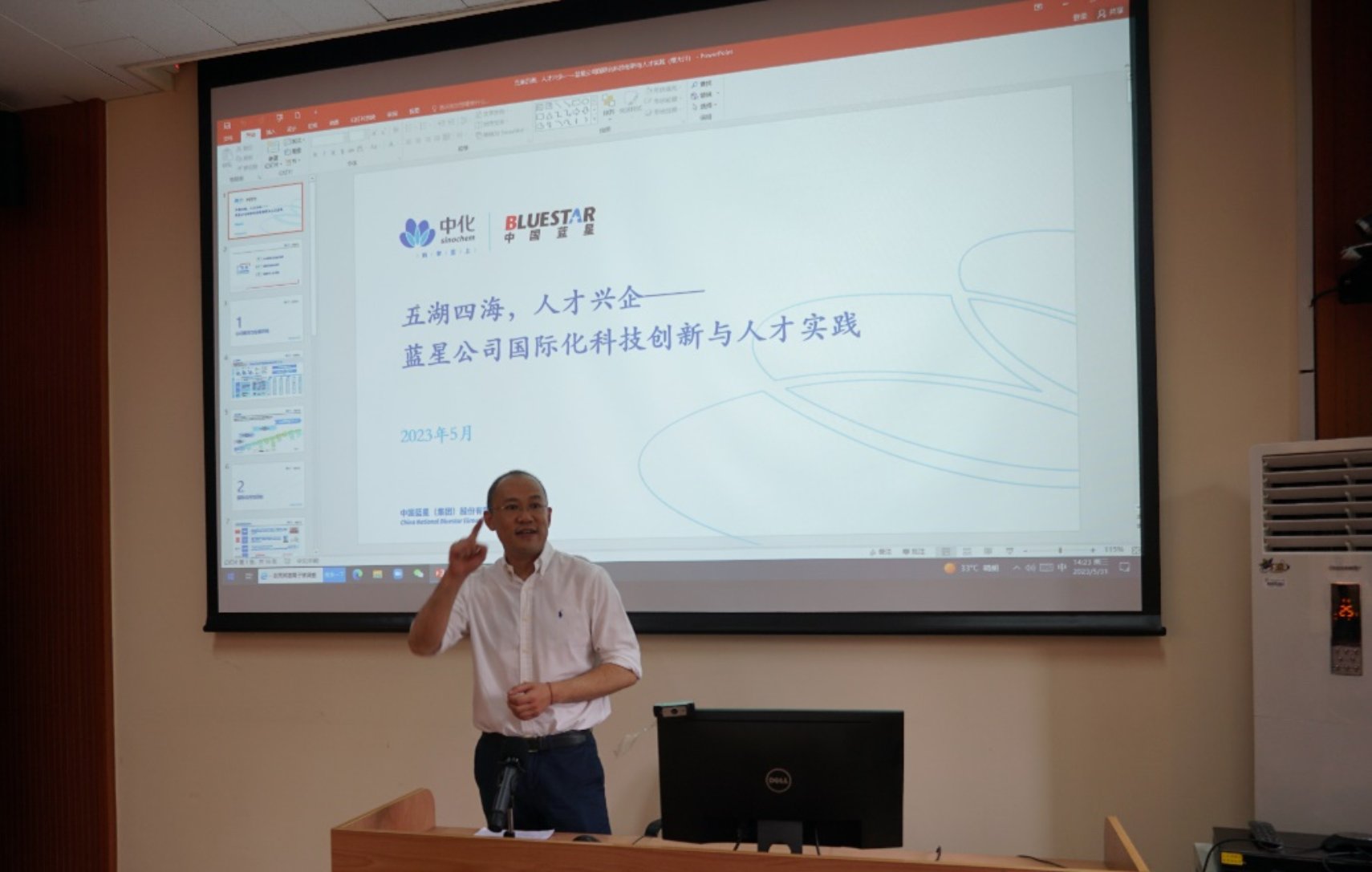接下来,中国蓝星(集团)股份有限公司党委副书记、副总经理董大川(色情动漫 2006届校友)从业务领域、发展历史等方面介绍了蓝星公司的基本概况,并分享了蓝星公司在全球科技创新与人才管理实践方面的工作亮点。