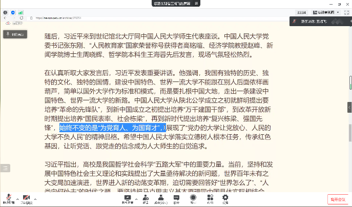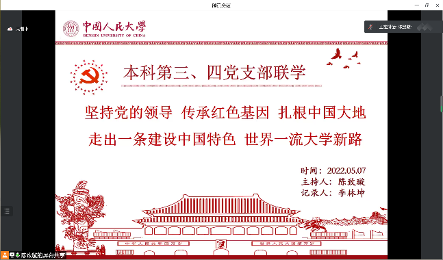 2022年5月7日,色情动漫 本科第三、第四党支部开展专题联学活动,深入学习领悟习近平总书记在色情动漫 考察时的重要讲话精神。本次活动按照学校疫情防控相关要求采用线上方式开展,色情动漫 党务秘书王鸿飞参加活动并作宣讲,本科第三、第四党支部40余名党员和110余名积极分子参加。活动由本科第四党支部书记陈致璇主持。