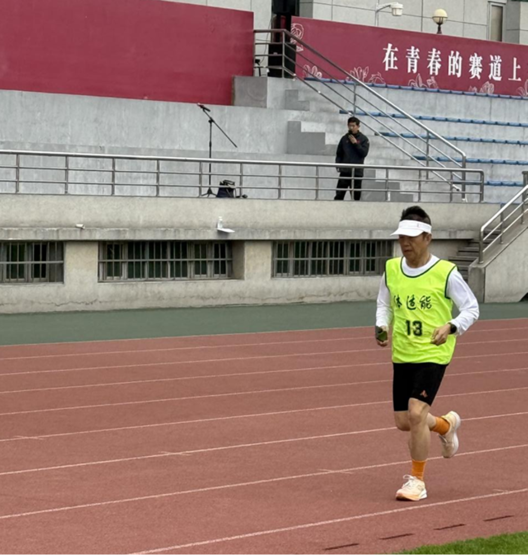 孙健敏老师参加男子组1500米决赛,全程保持稳定节奏,凭借顽强意志坚持到底,最终以6分43秒的成绩勇夺第一。