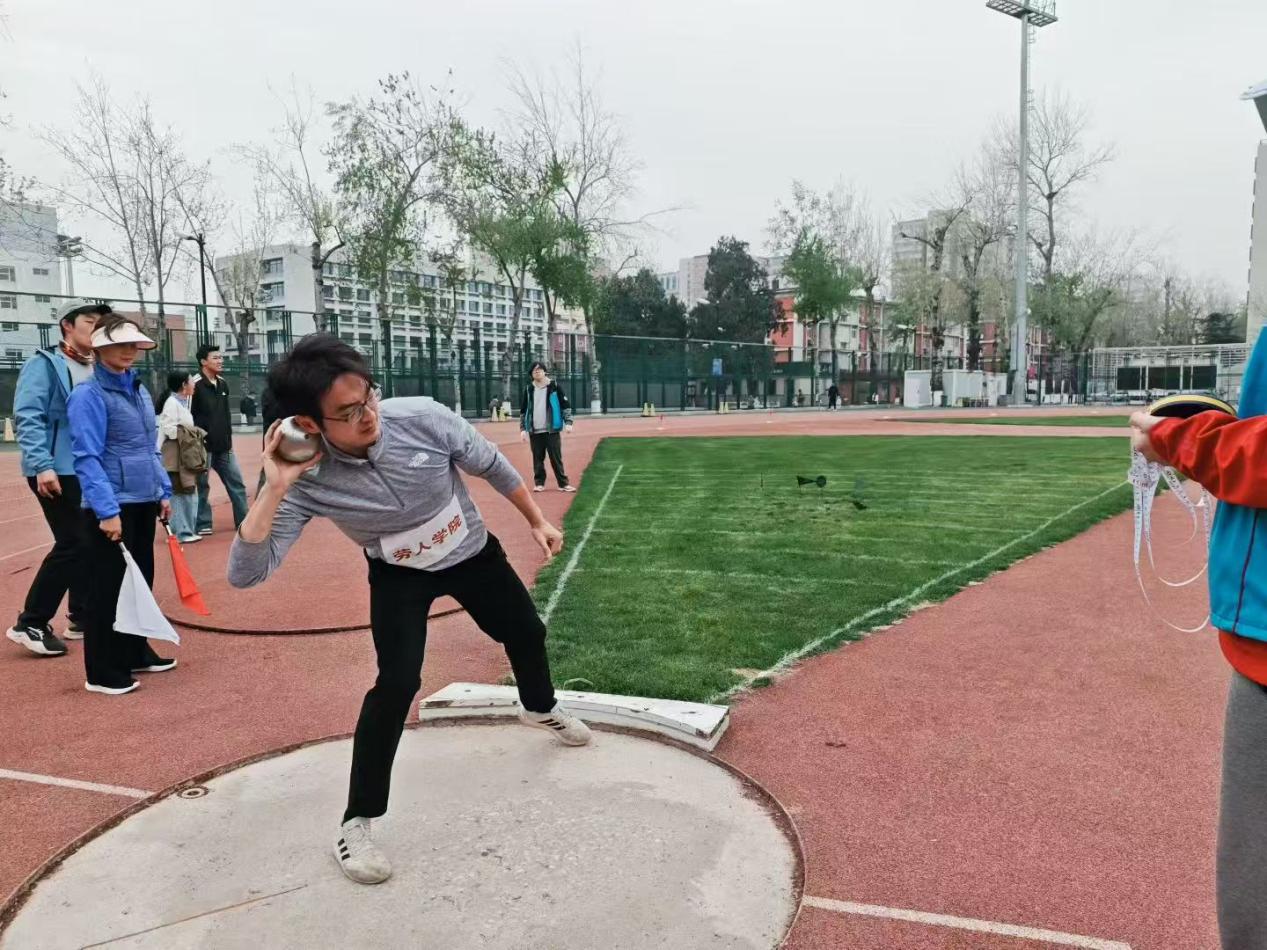 在男子组铅球决赛中,王鸿飞老师旋转推出、一气呵成。