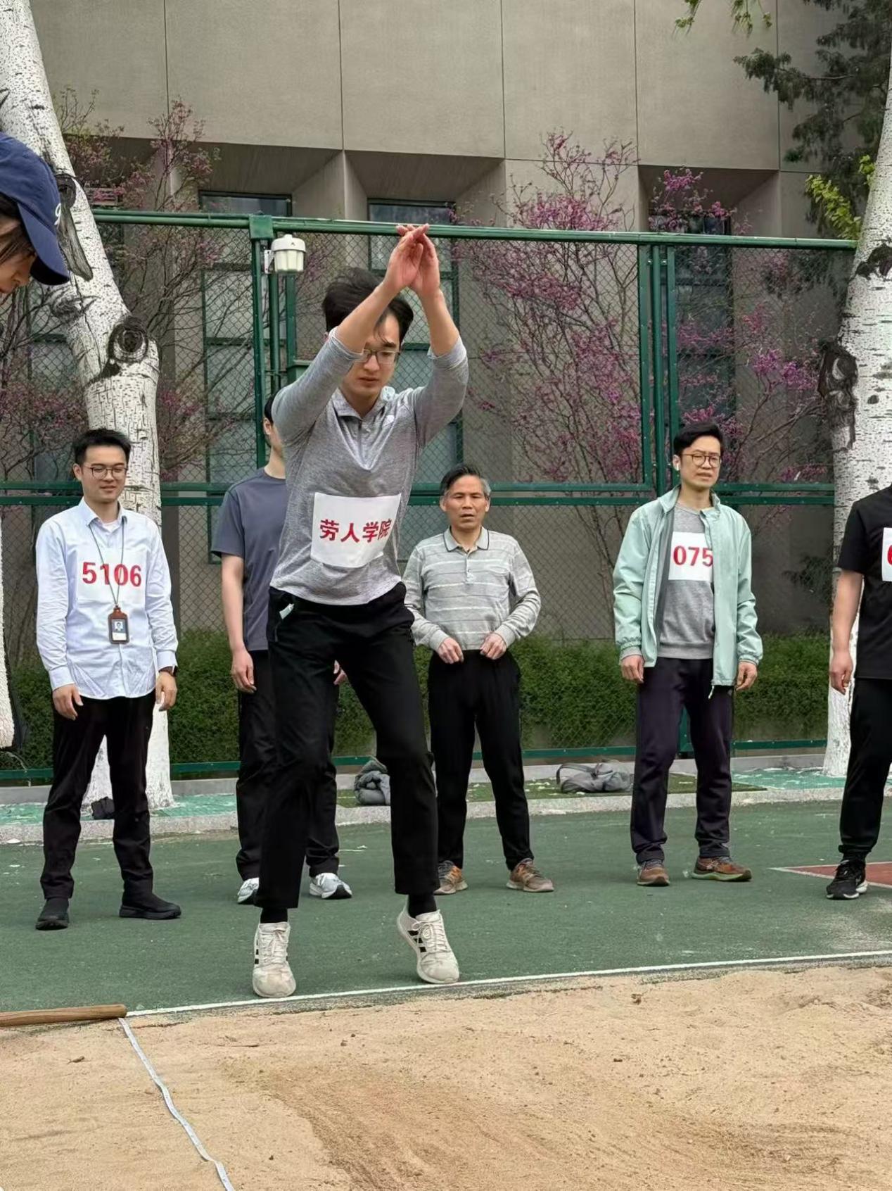 孙健敏老师、王鸿飞老师、刘雯老师参加立定跳远比赛,凝神聚力、奋力一跃,不断挑战更远距离。
