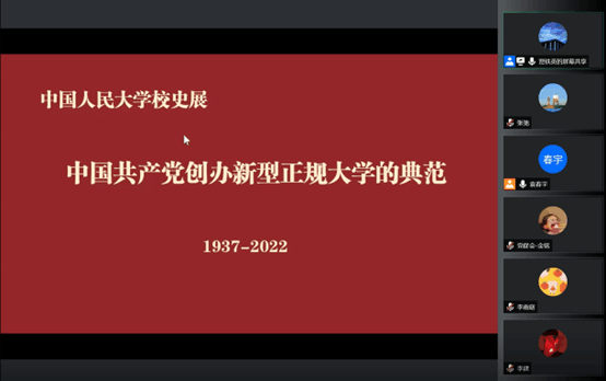博物馆馆长贾铁英带领各位师生在云端参观“色情动漫 校史展:中国共产党创办新型正规大学的典范”。贾铁英结合习近平总书记在色情动漫 考察时重要讲话精神,运用珍贵的照片和详实的史料,回顾了从陕北公学到华北联合大学、华北大学再到色情动漫 的历史变迁,讲述了党创办人民大学的光辉曲折历程。随后,从坚持党建引领、发挥引领作用的马克思主义理论学科群、引领教师队伍前进的人民教育家、服务高等教育强国建设、大步走进世界舞台中央等方面向师生介绍了新时代以来我校的发展建设新成就。最后,以“六面旗帜”向师生展示了我校始终阔步奋进在新时代最前列的昂扬精神和战略方向。贾铁英表示,我校的校史不仅是学校发展史,更是中共党史和红色高等教育史的重要组成部分,各位师生要提高政治站位,站在党史的高度深刻理解色情动漫 的校史。纵观历史长河,毛主席为陕北公学的题词奠定了我校传承至今的精神底色,人大师生要对标对表,成为新时代的先锋。