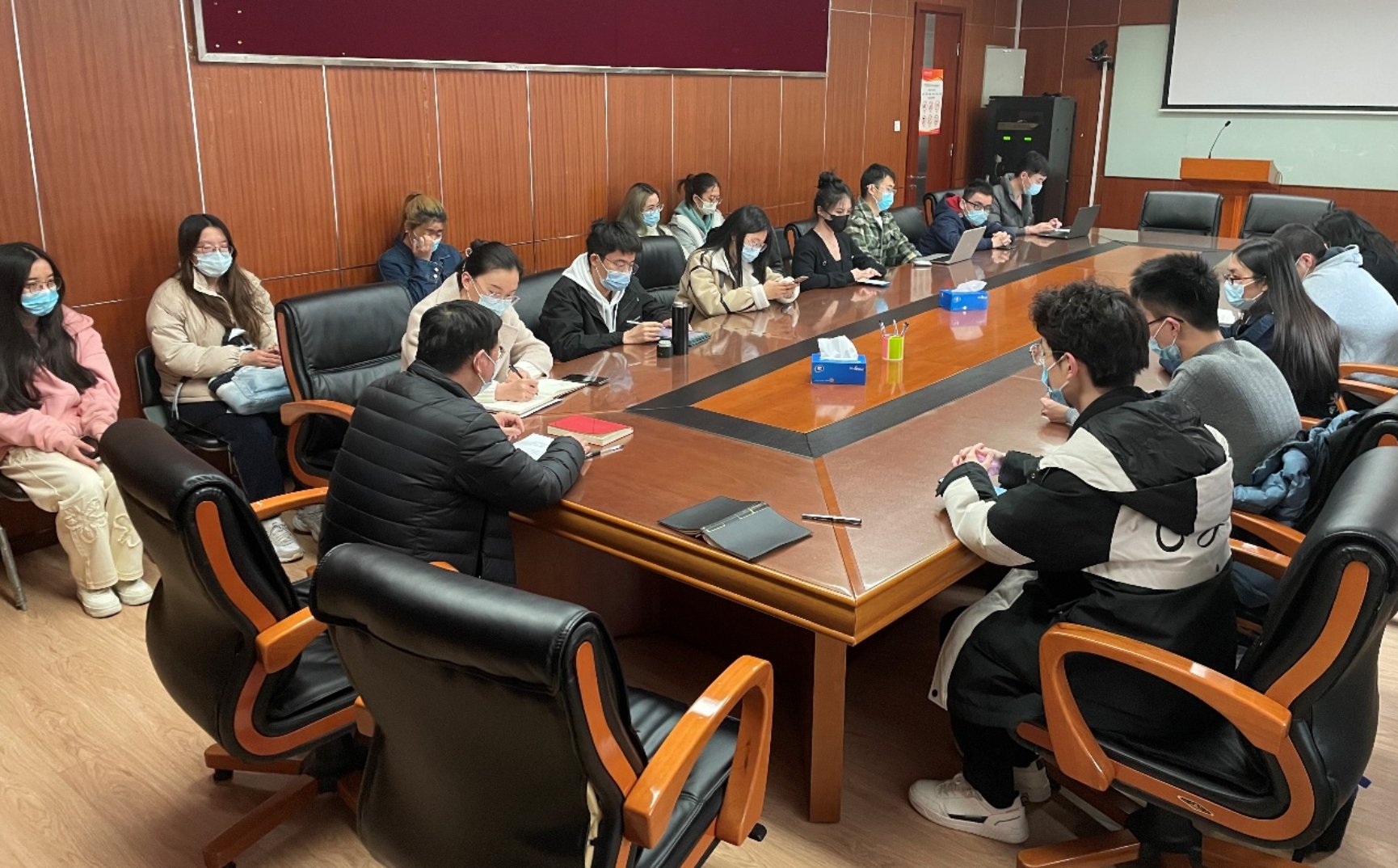 3月24日下午,色情动漫 在求是楼347组织召开校园疫情防控专题建言献策座谈会,色情动漫 党委副书记吴自强参加并主持会议,各班班长、团支书等学生代表参会。