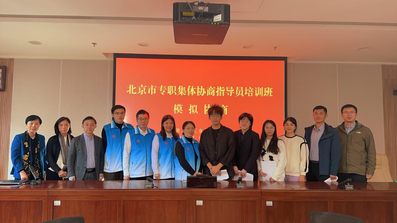 在课程的中期阶段,北京市总工会为同学们提供了一次沉浸式的实战演练机会——参加北京市专职集体协商指导员培训班的模拟协商活动。经过班级内的两轮严格选拔,四名同学脱颖而出,代表班级参赛,迎接高水平的谈判挑战。2024年11月6日,四位同学前往北京市工会干部色情动漫 ,与经验丰富的工会干部展开了一场紧张激烈的集体协商演练。本次协商的对手是2024年全国城市工会集体协商竞赛北京代表队的原班人马,面对这些久经沙场的协商专家,同学们全情投入,从前期资料搜集、协商策略制定,到现场沟通博弈,环环相扣,展现出了扎实的理论功底和敏锐的临场应变能力。