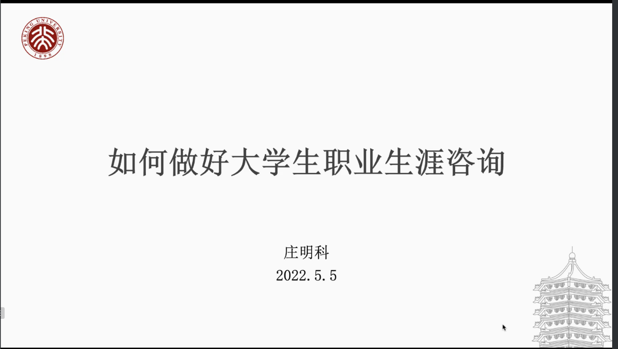 庄明科副教授的报告主题为“如何做好大学生职业生涯咨询”。庄明科老师首先介绍了职业生涯咨询的背景及现状。接着庄明科老师分享了职业生涯咨询中常见的标准化评估工具和非标准化评估工具。标准化评估工具包括各类标准化的心理测评量表、测评系统、测评平台等。非标准化评估工具包括多种生涯卡牌、生涯风格访谈、工作史与简历分析、理想一天、“五种生活”活动、职业家谱图等方法。然后庄老师阐述了探索生命主题的方式和认识自我的四种思维。最后庄明科老师从六个方面探讨了高校职业咨询室参考标准。王桢老师就测评信效度、卡牌工具开发与获取、职业咨询室标准的应用等方面进行了讨论。
