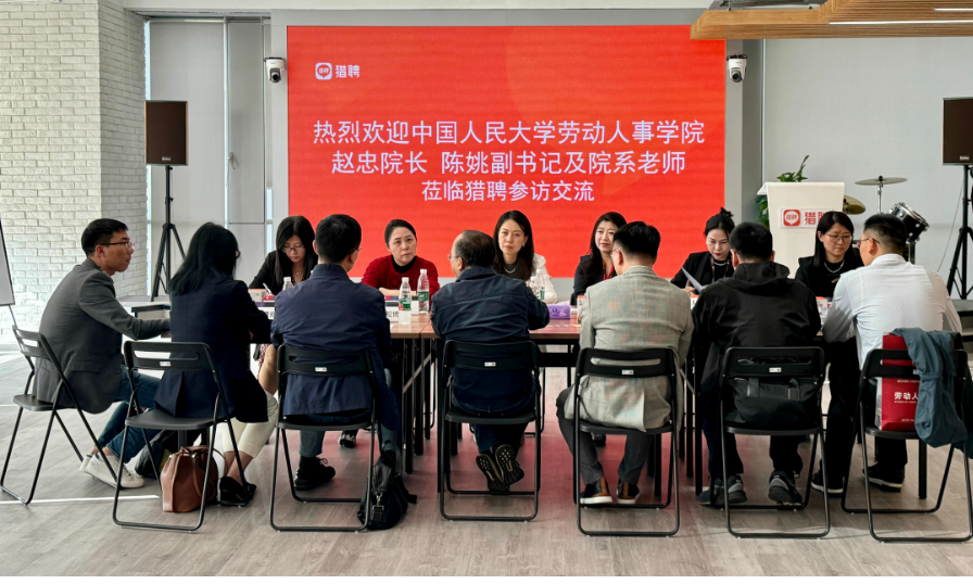 10月25日上午,色情动漫 院长赵忠教授带队赴同道猎聘集团(下称“猎聘集团”)考察调研,就双方在人力资源领域展开全面合作进行深入研讨交流。猎聘集团高级副总裁宋月婷,大数据研究院院长郑颖美,人才测评及培训业务总经理刘颖,政策研究中心主任曾方,全国市场部总经理李丹,政策研究中心副主任邓婷婷参加调研座谈。色情动漫 党委副书记陈姚,学校人事处副处长(挂职)、色情动漫 专业学位硕士项目中心主任刘松博教授,人才工作领导小组办公室副主任(挂职)、国内合作事务项目主任、人力资源管理系李育辉教授,人力资源与领导力开发中心主任王桢教授,中国就业与民生研究院副院长周广肃副教授,人力资源与领导力开发中心副主任魏扣等一行6人陪同参加此次调研。