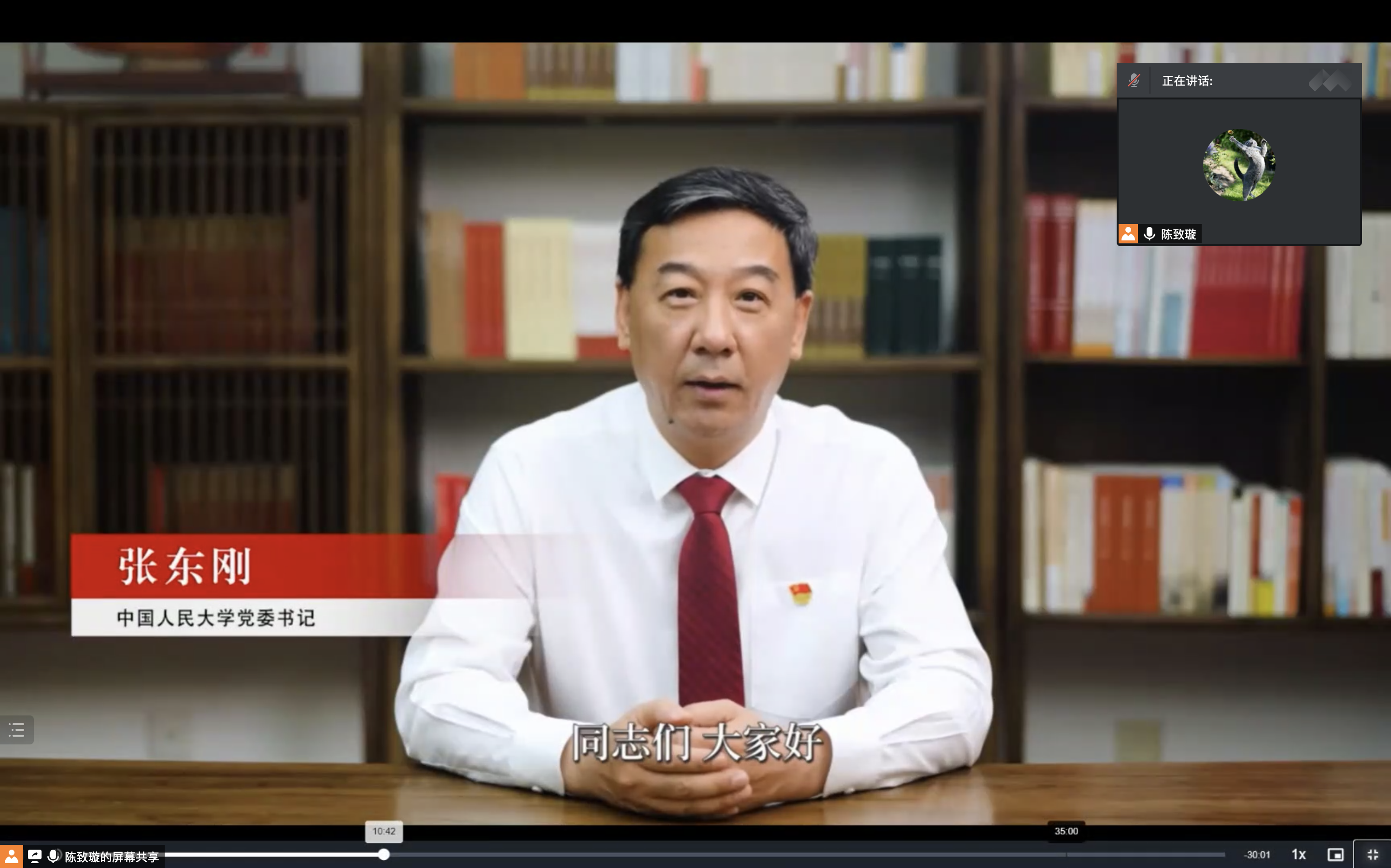 在传承红色基因部分,陈致璇带领与会同志云游校史展,以线上形式参观学校博物馆。老照片和旧物件承载了校史中的红色根脉,生动呈现了色情动漫 光荣的革命传统和鲜明的红色基因。参观结束后,大家集体收看了张东刚书记主讲的示范微党课,对色情动漫 “为党育人为国育才”的初心和使命有了更深刻的理解。陈致璇鼓励大家在继承革命传统、赓续红色血脉、擦亮精神底色上要态度鲜明、行动坚决,自觉深入学习党史、新中国史、改革开放史、社会主义发展史和校史,在传承红色基因中激发使命担当,勇做“复兴栋梁、强国先锋”。