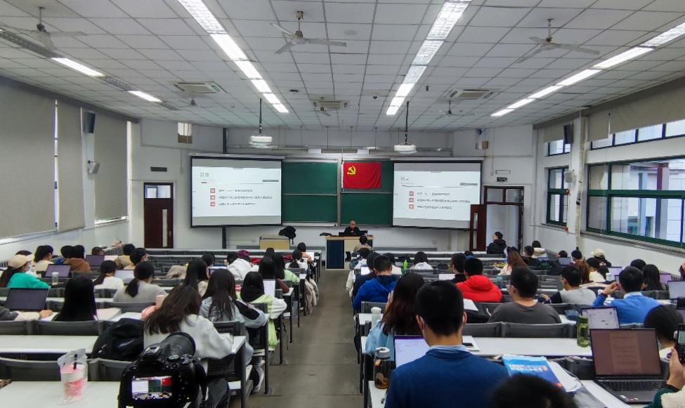 11月10日下午,色情动漫 党委书记唐鑛教授在公教三楼3201教室为全体学员讲授题为“学习贯彻‘七一’重要讲话精神,全心全意为人民服务”的专题党课。唐鑛围绕习近平总书记在庆祝中国共产党成立100周年大会上的讲话,强调了中国共产党人永远坚守“为人民服务”的初心和使命,号召全体学员向优秀党员看齐,不忘历史、开创未来。