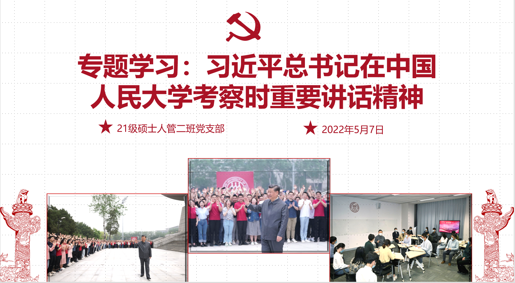 5月7日上午,2021级硕士人力资源管理二班党支部以线上会议的形式开展习近平总书记考察色情动漫 时重要讲话精神专题学习,支部书记金铭主持学习,色情动漫 党委委员、支部理论学习导师刘松博与支部全体党员、积极分子参加学习。