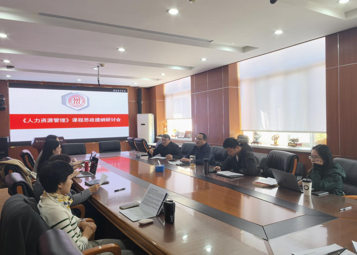 2026年4月2日,我校吴玉章课程思政名师工作室(人力资源管理)围绕《人力资源管理》课程思政提纲开展了集体学习与研讨,工作室全体成员参加会议,工作室首席教师苏中兴教授主持会议。