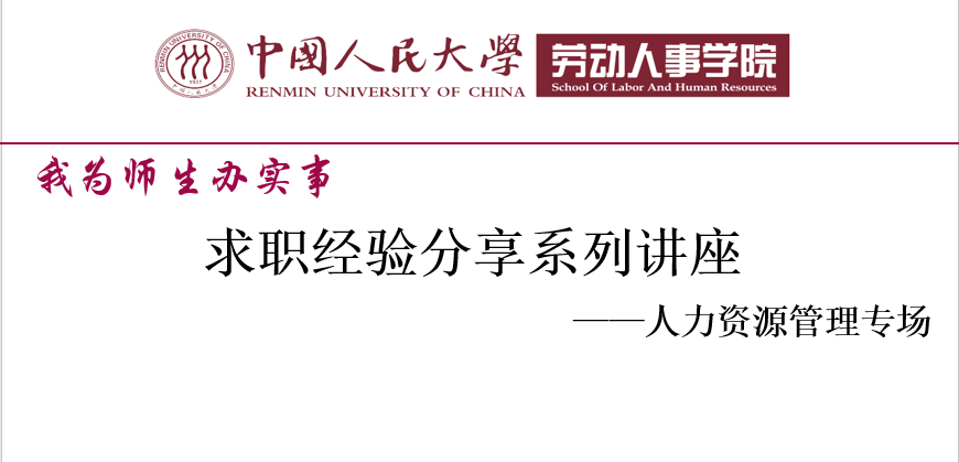 4月16日上午,首场求职经验分享讲座——“人力资源管理专场”通过腾讯会议线上举行。此次讲座邀请了4位人大校友担任分享嘉宾,他们分别从HR从业者、国企HR求职、民企HR求职和人力资源管理咨询求职等方面,为同学们提供了职业规划信息、分享了求职经验。