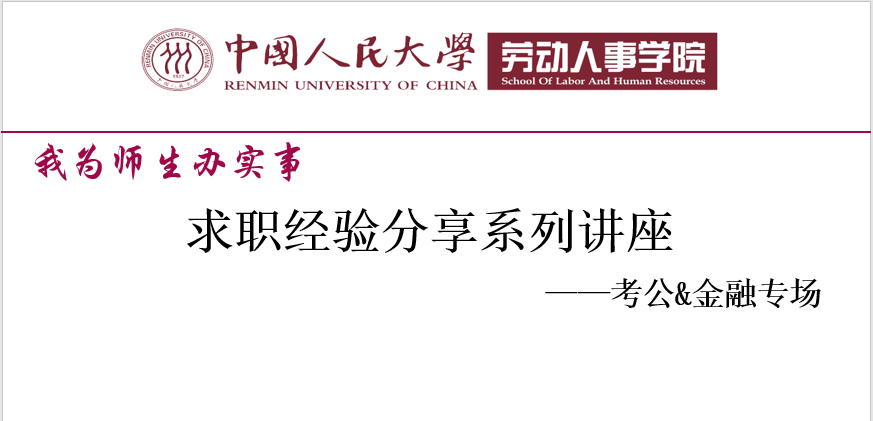 4月23日上午,第二场求职经验分享讲座——“考公&金融专场”也如期线上举行。此次讲座邀请了4位人大校友担任分享嘉宾,他们分别从公务员备考、工作经历分享、金融求职等方面分享了相关经验。