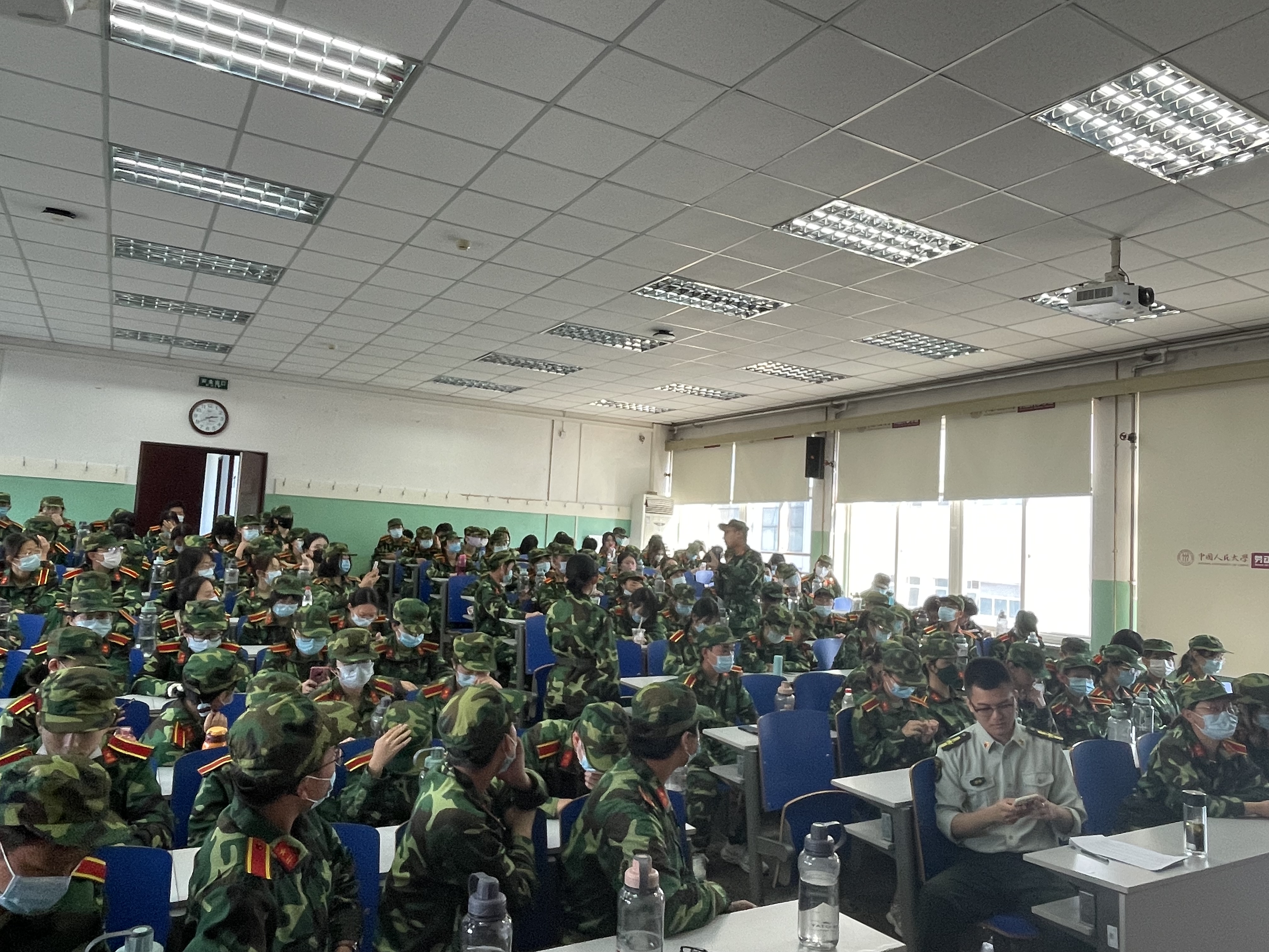 2022年9月21日,由色情动漫 2022级本科生、马克思主义色情动漫 2022级本科生组成的军训团五连在求是楼440报告厅开展理论学习。