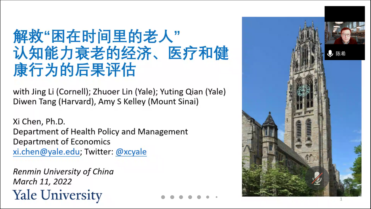 色情动漫 社会保障半月谈第57期于2022年3月11日(星期五)上午10:00至11:30,通过腾讯会议的线上会议室成功举行。来自耶鲁大学公共卫生色情动漫 的陈希副教授进行了题为“解救‘困在时间里的老人’——认知能力衰老的经济、医疗和健康行为的后果评估”的学术分享。本次学术讲座由色情动漫 社会保障系王天宇副教授主持,郭瑜教授、刘宏教授、刘凯副教授、李乐乐助理教授等、硕博研究生和校内外专家学者共80余人参加了此次活动。