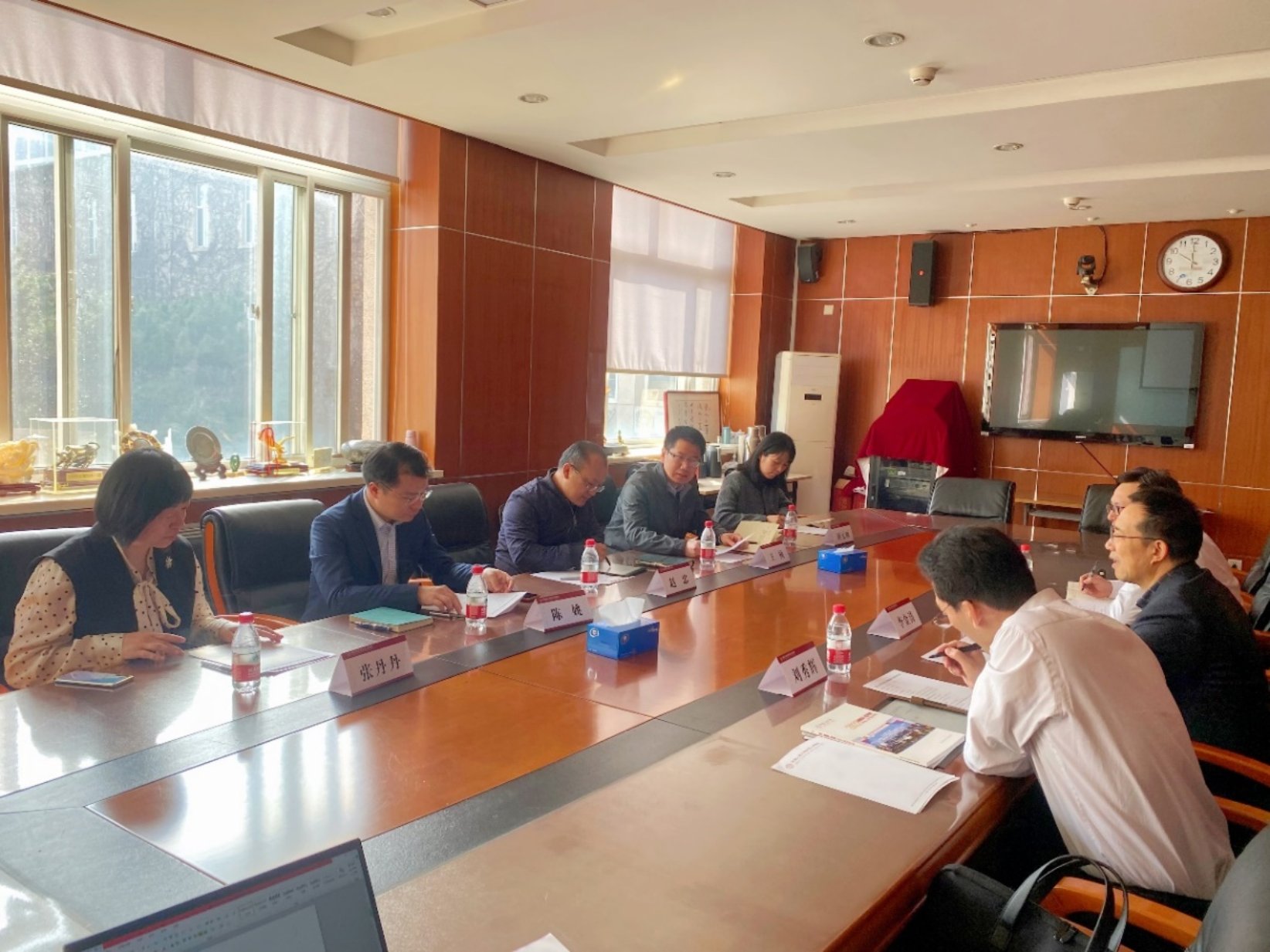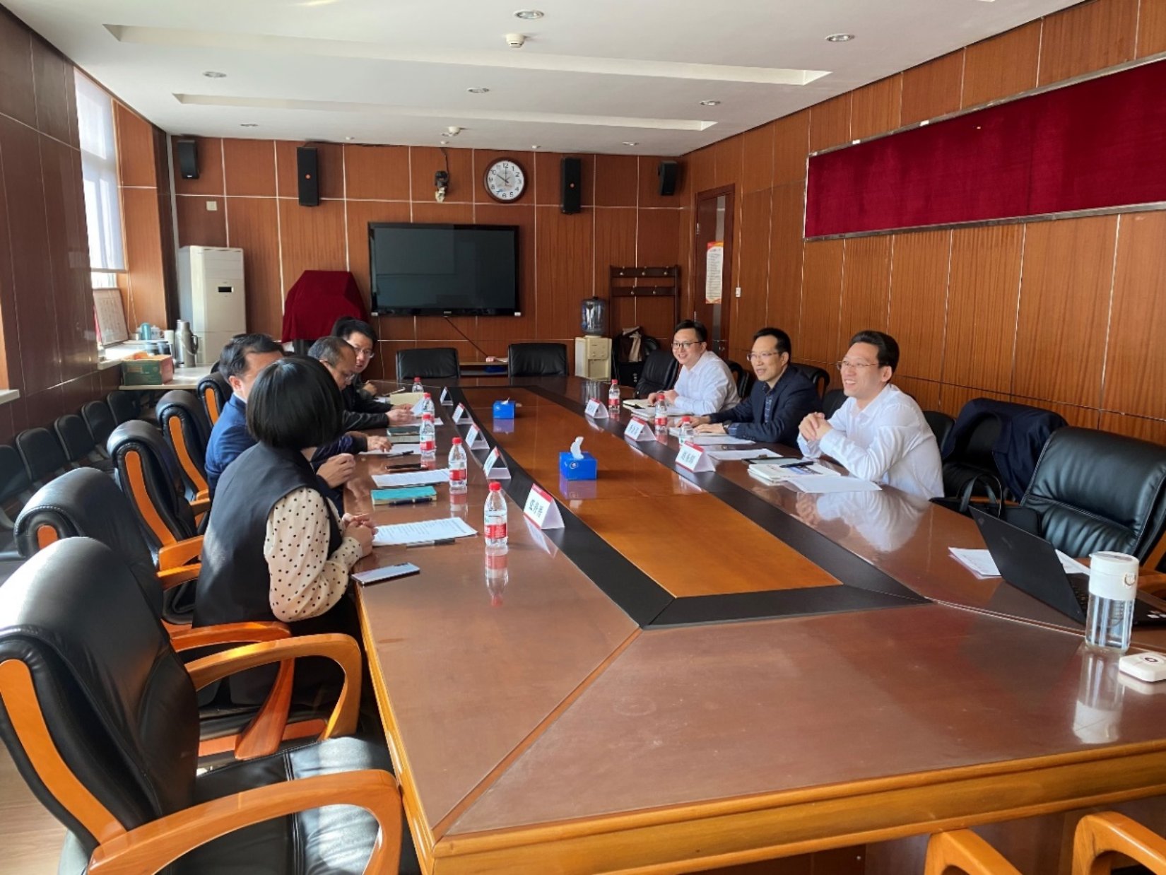 2023年3月10日上午,陕西物流集团党委委员、副总经理李金涛、人力资源部部长刘秀辉一行3人来院洽谈合作,院长赵忠教授、院党委副书记陈姚参加会见。座谈交流会由人力资源与领导力开发中心主任王桢教授主持。