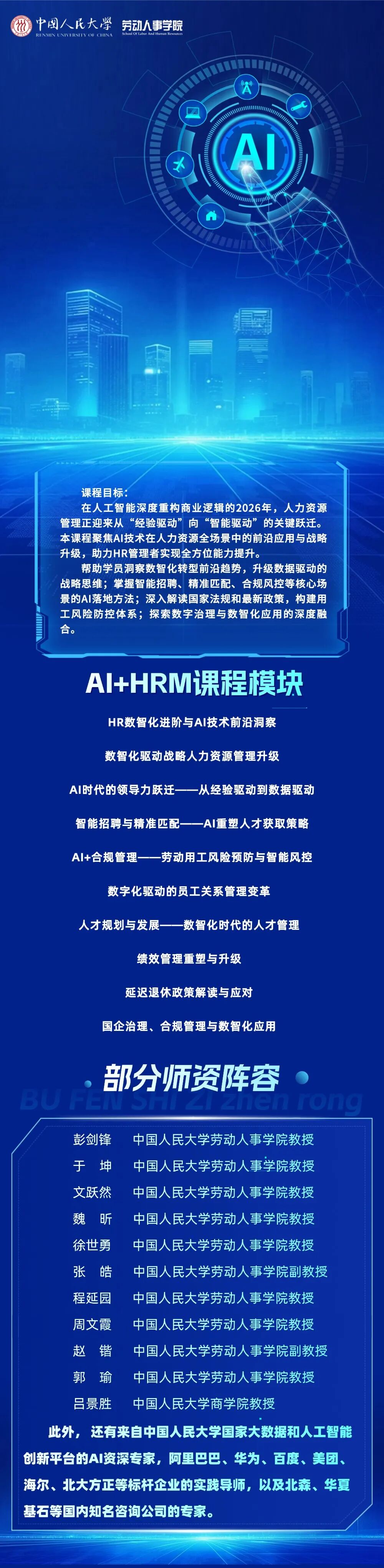 人力资源与领导力开发中心副主任黄宾华老师对课程模块进行了系统解读。本次发布的课程包涵盖HR数智化进阶与AI技术前沿、数智化驱动战略人力资源管理、AI时代的领导力、员工关系管理创新、人力资源管理合规治理等十大核心模块,形成从技术洞察到战略落地的知识体系。他还重点介绍了学院在职课程培训班及战略人才官等高管教育项目,旨在培养具备高阶数字化能力的HR管理人才,实现从传统运营到战略引领的能力跃迁。