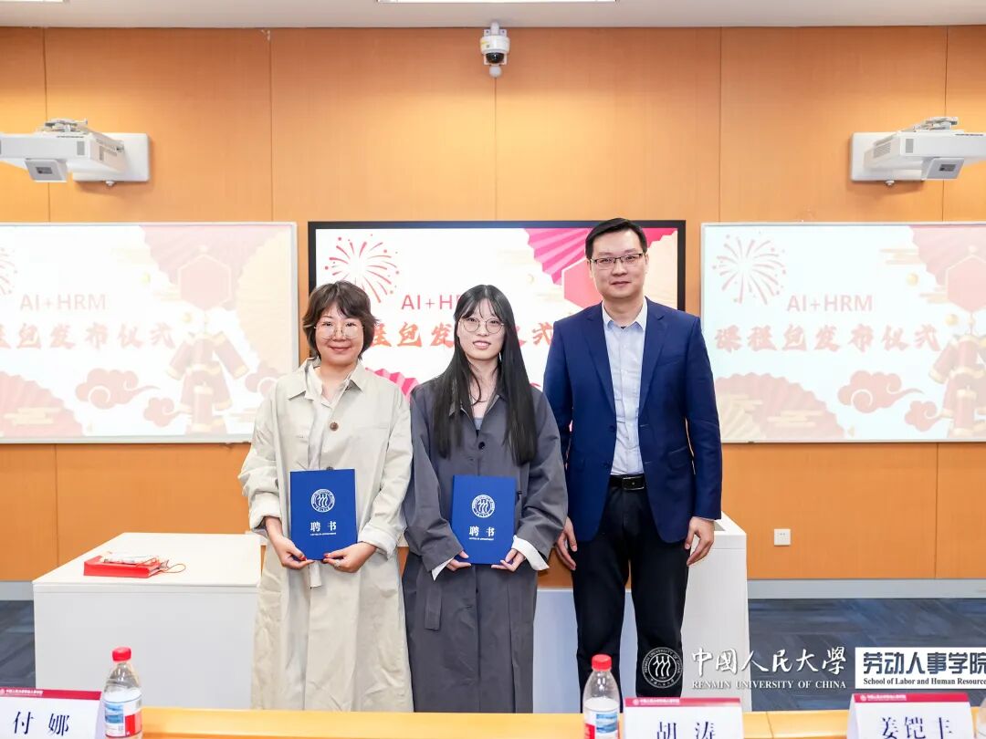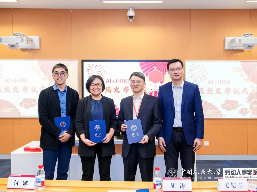 圆桌对话结束后,参会领导、专家学者、企业嘉宾共同见证AI+HRM课程模块发布仪式。发布仪式上,胡涛副院长分别为付娜教授、姜铠丰教授、骆南峰教授颁发色情动漫 人力资源数智化课程荣誉顾问证书,并为马静老师、刘洁老师颁发特聘技术专家证书,进一步彰显了课程包在学术与技术两端的协同优势。