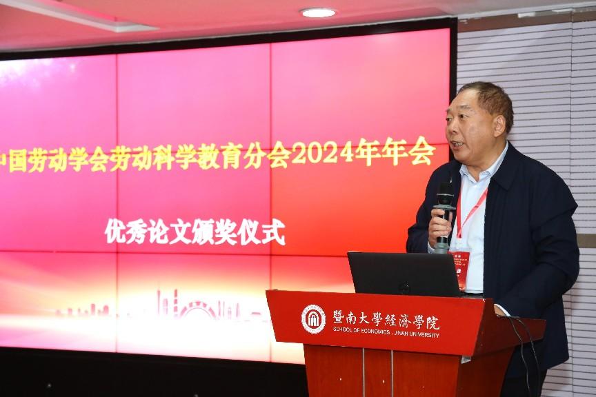 年会闭幕式环节由中国劳动学会劳动科学教育分会副会长兼秘书长韩克庆主持。中国劳动学会秘书长赵越宣读了年会获奖论文名单,其中一等奖论文1篇、二等奖论文2篇、三等奖论文7篇,分别来自暨南大学、中国政法大学、北京联合大学、东北财经大学、中国政法大学、南京财经大学、华南师范大学、广东工业大学、汕头大学等高校。