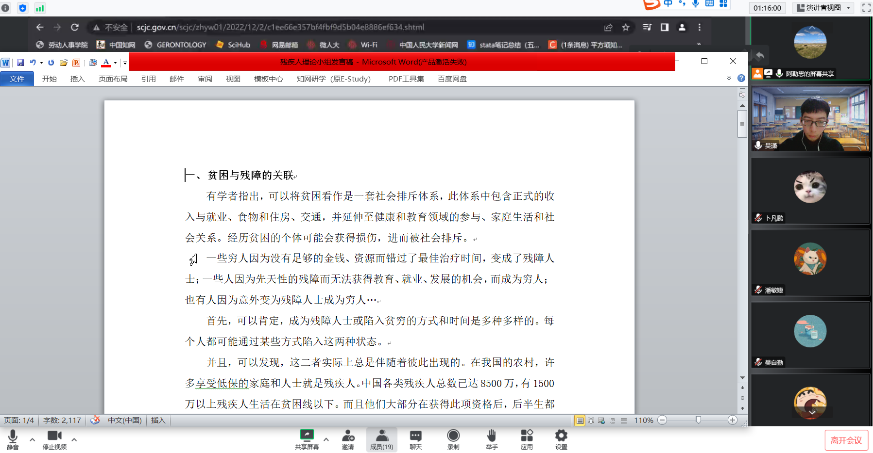 最后,乔庆梅老师在研讨总结中表示作为社会保障专业学生与科研工作者应具备“扶危济困、关切民生”的情怀,应将实现我国社会保障体系的公平统一作为自己的不懈追求,勉励与会同志在疫情环境中努力保持好身体健康,树立起学术、工作事业的远大目标,志存高远,脚踏实地,做国家的骨干和栋梁。