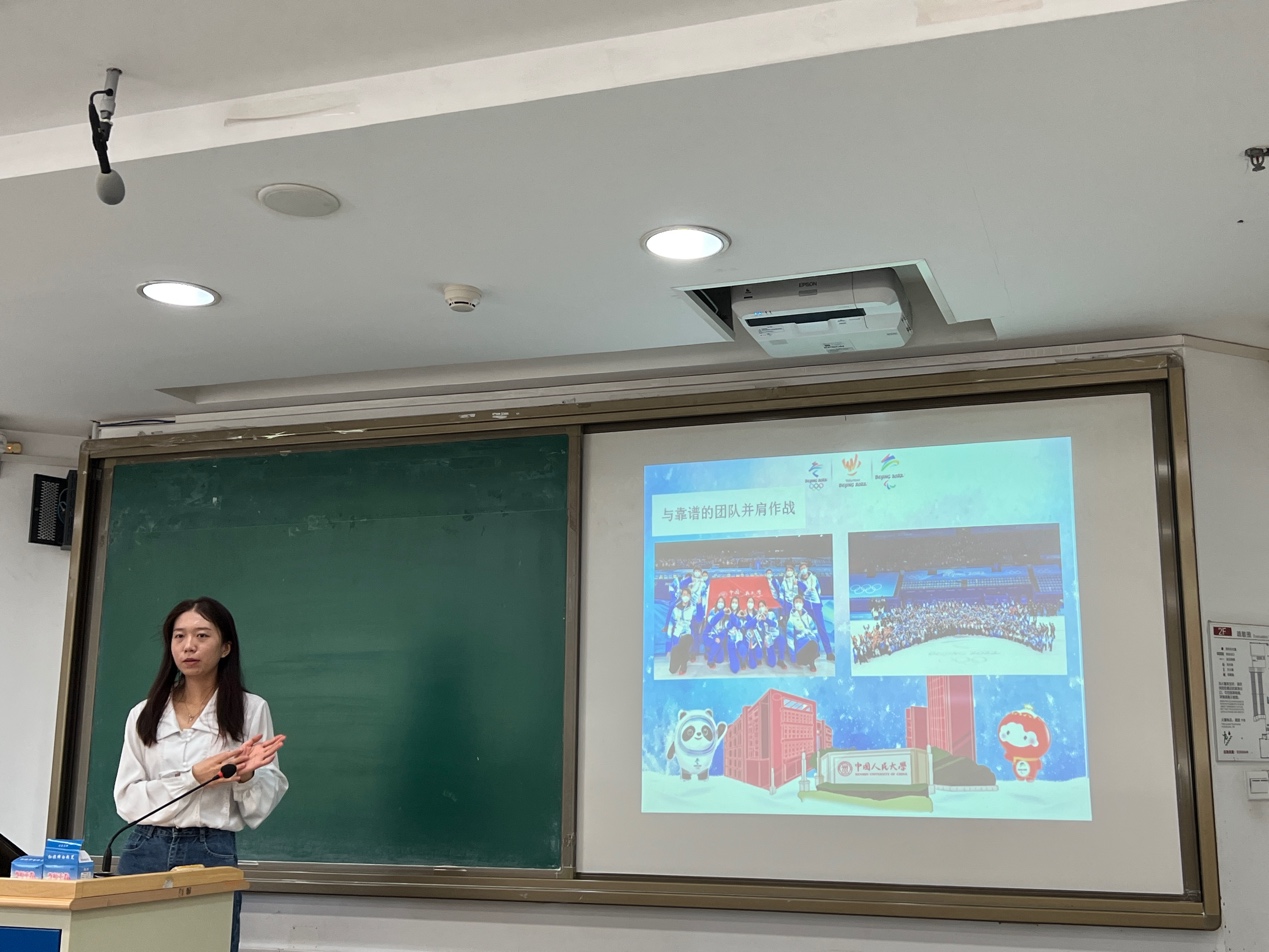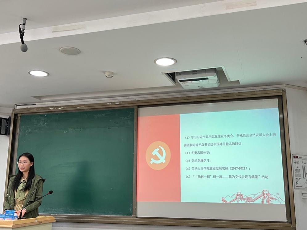 在重要讲话学习模块,陈致璇首先带领与会同志重温习近平总书记在北京冬奥会、冬残奥会总结表彰大会上的讲话,深入浅出地讲解了“四个坚持”对北京冬奥会、冬残奥会成功举办的关键意义;并结合时代脉搏与青年使命,生动阐释了“胸怀大局、自信开放、迎难而上、追求卓越、共创未来”的北京冬奥精神。之后,陈致璇从习近平总书记对运动员、青少年和所有追梦者的鼓励与嘱托出发,解读总书记给中国冰雪健儿的回信,并鼓励与会同志将个人梦想与中国梦紧密相连,用奋斗书写青春华章,以实际行动迎接党的二十大和学校第十五次党代会的胜利召开。